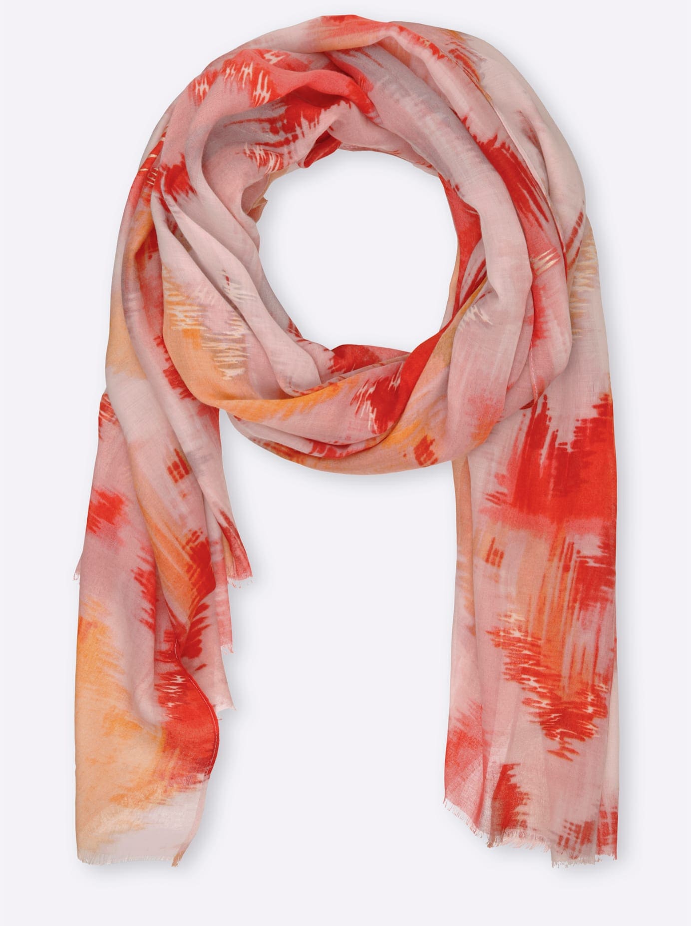 - Modische Schals in moderater Breite und Länge weisen trendige Details auf, wie extralange Fransen. Angesagte Muster und Farben machen diese Ausführungen zu begehrten Accessoires, zum Beispiel mit sanften Batik-Farbverläufen oder grafischen Prints in Neontönen.