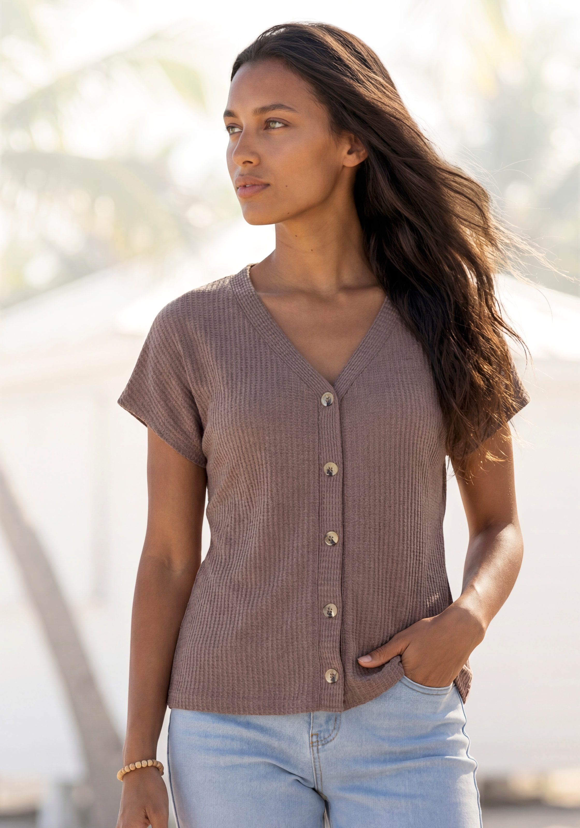 + Farben - T-Shirt »mit kurzer Knopfleiste« aus weicher Viskose-Ripp-QualitätLASCANAAktueller Preisab 34.90 CHF