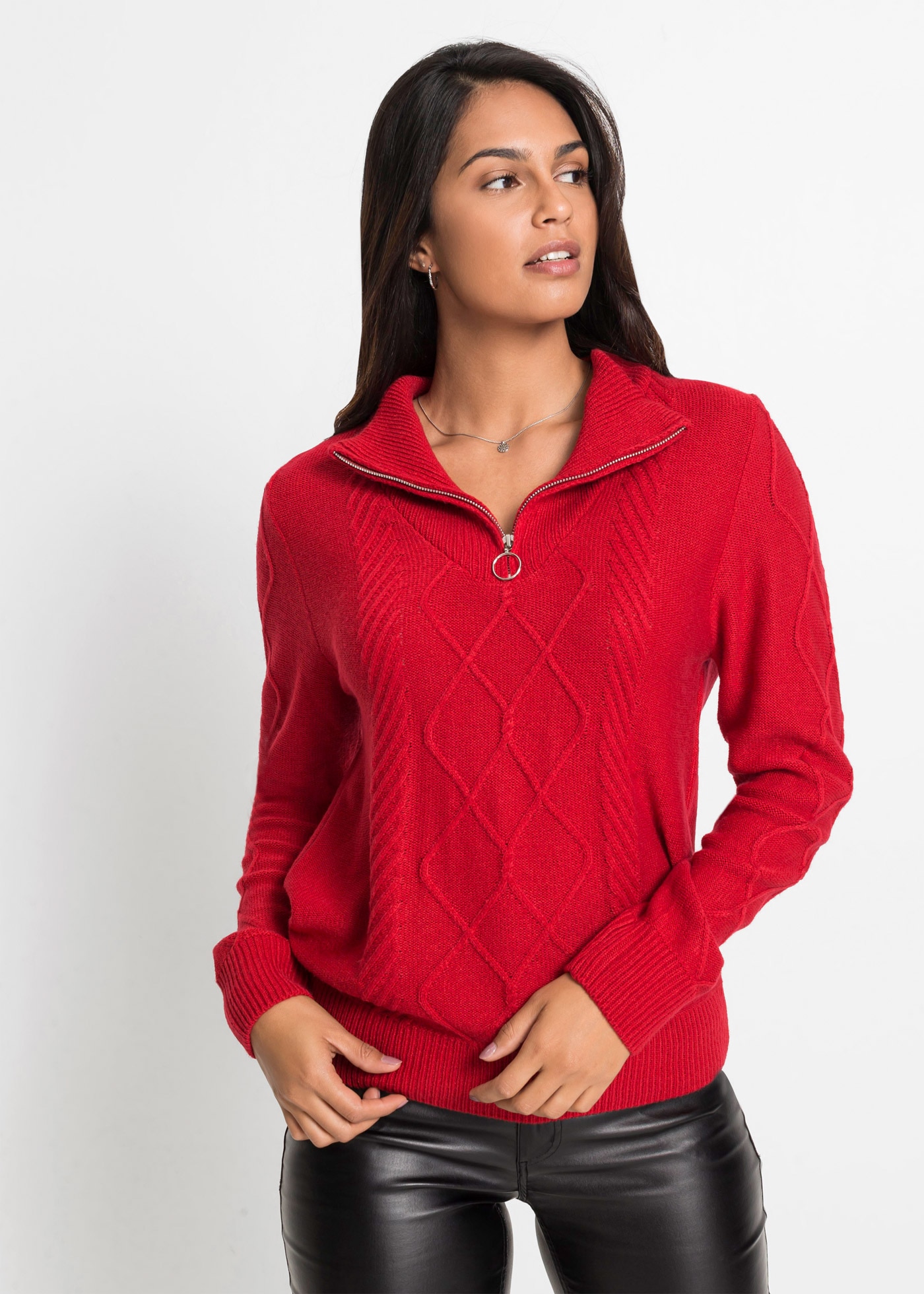 - Troyer aus Ajourstrick, mit Stehkragen, figurumspielende PassformbonprixPrix actuel54.90 CHF