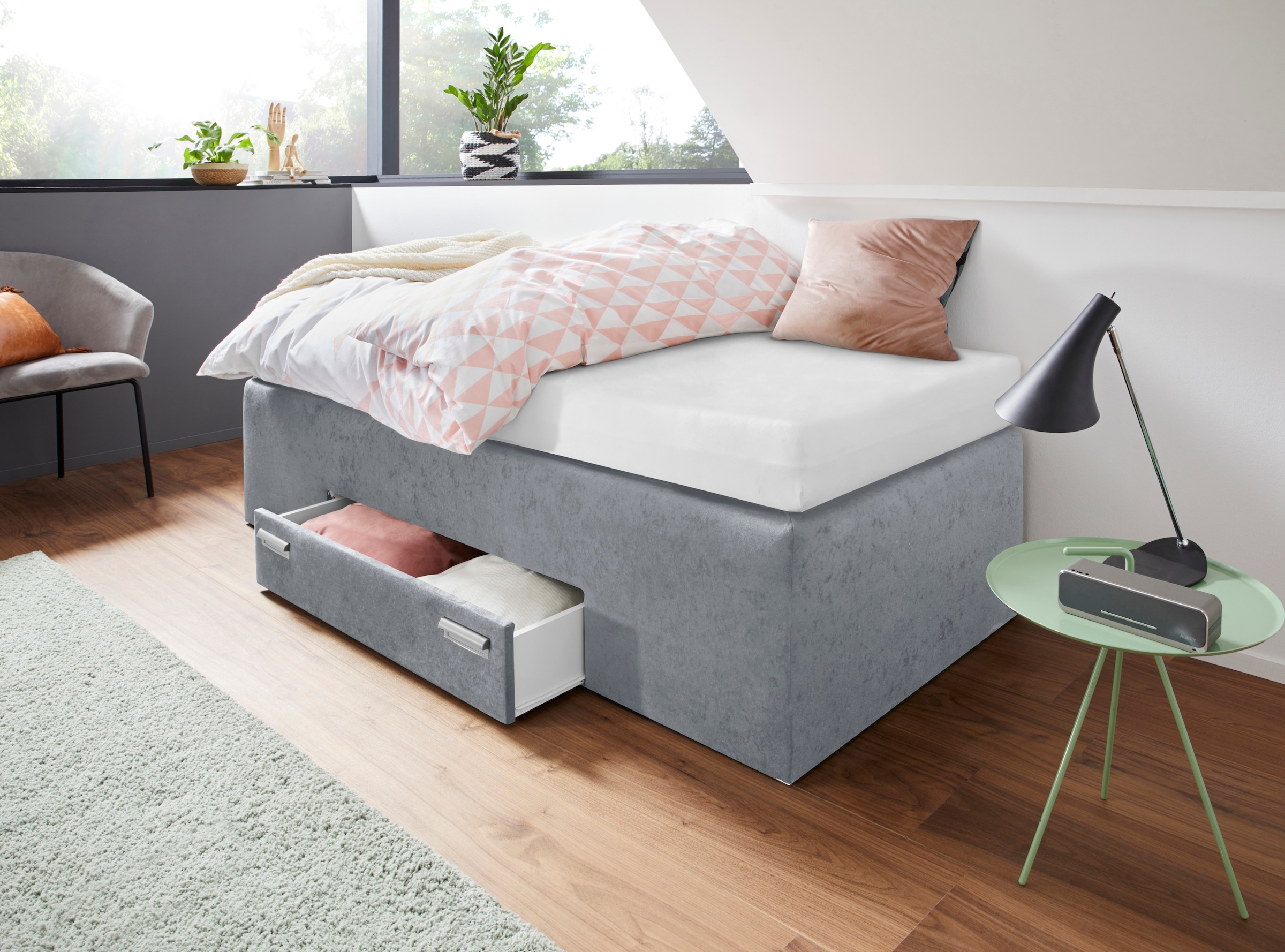 + Couleurs - Lit boxspring mit integrierter Schublade, frei im Raum stellbarWestfalia SchlafkomfortPrix actueldès 839.00 CHF+ Couleurs