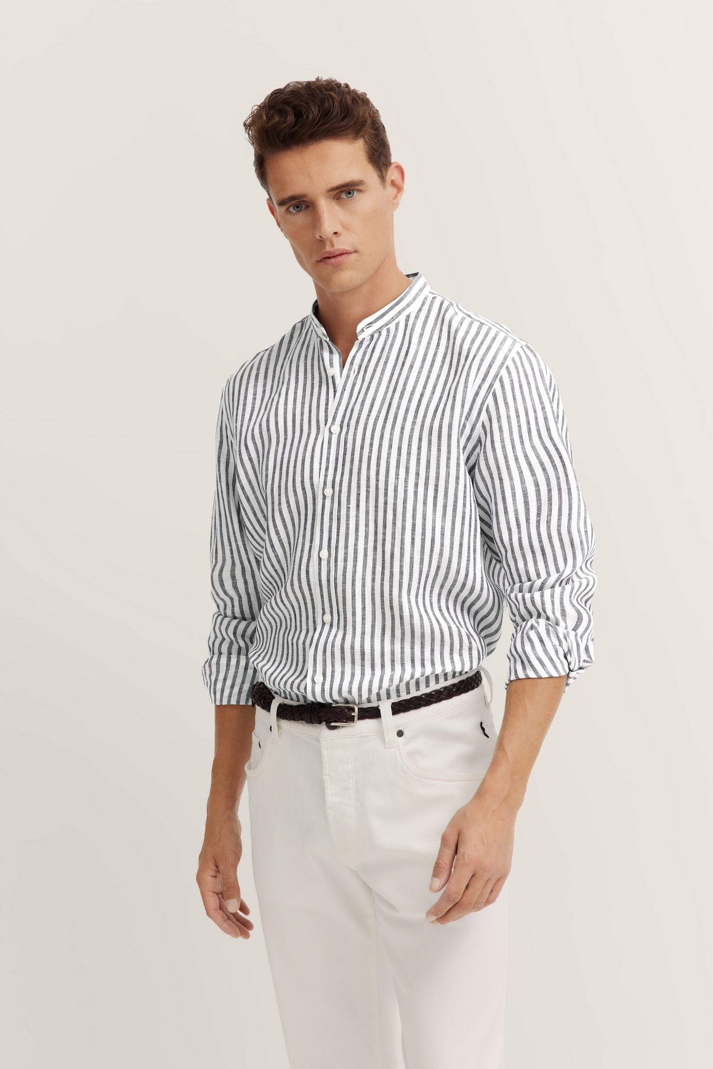 - Chemise en lin »LINEN STANDUP COLLAR SLIM SHIRT« in UnifarbeCalvin KleinPrix initialau lieu de 169.00 CHFRemise- 74.10 CHFPrix actuel94.90 CHF