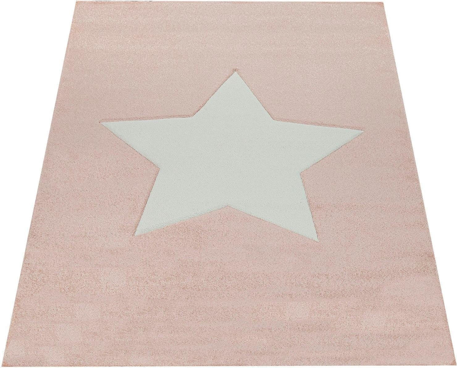 Paco Home Tapis pour enfants »Cosmo 397« Rectangulaire 18 mm Höhe 3D-Design, Motiv Stern, Pastell-Farben, Kinder- und Jugendzimmer