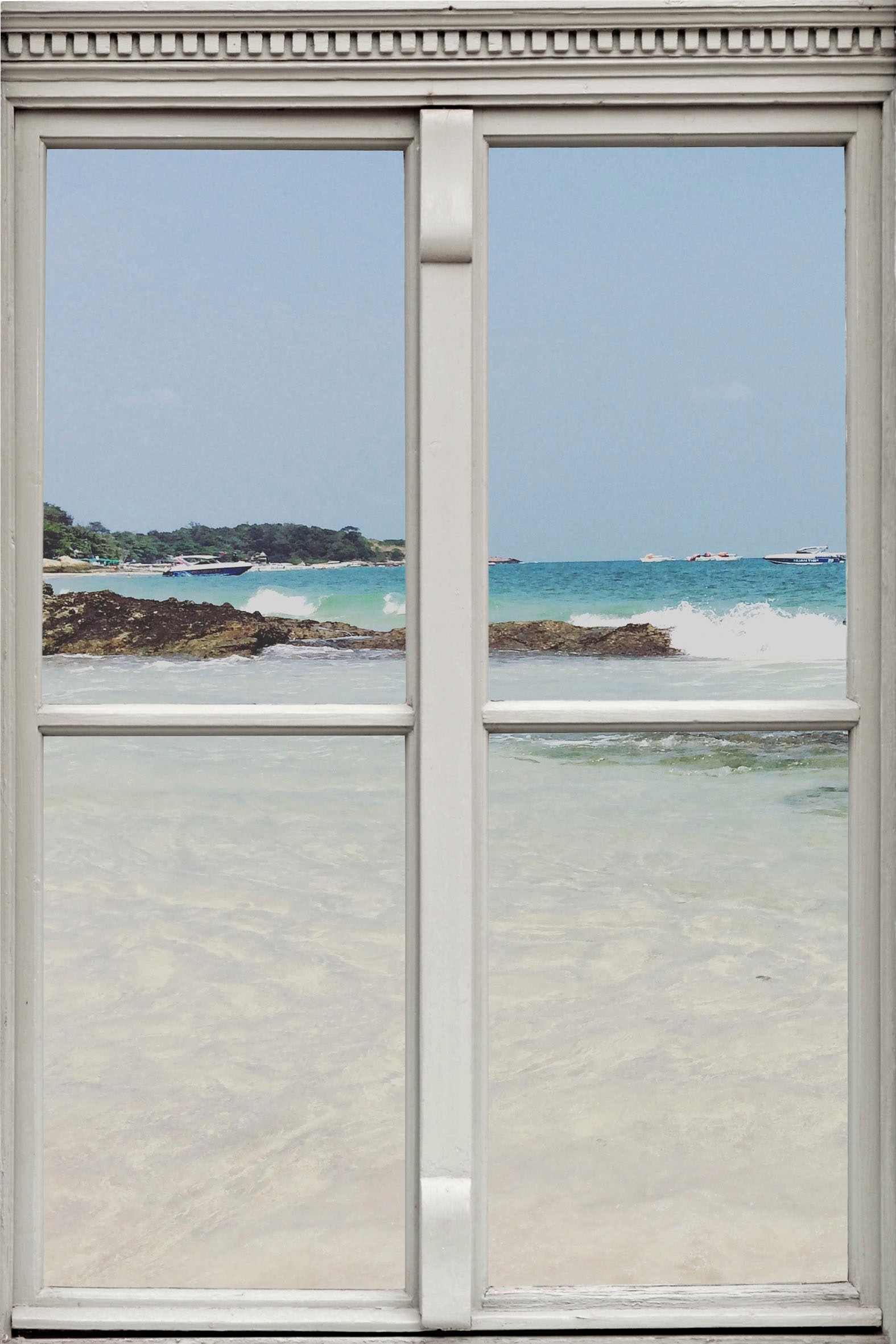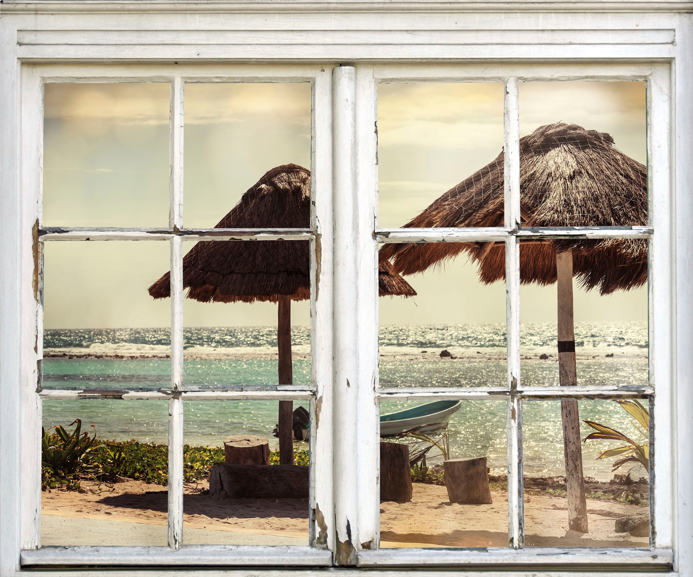 queence Autocollants muraux »Palmenstrand« Wandsticker, Wandbild, selbstklebend, 3D, Fenster