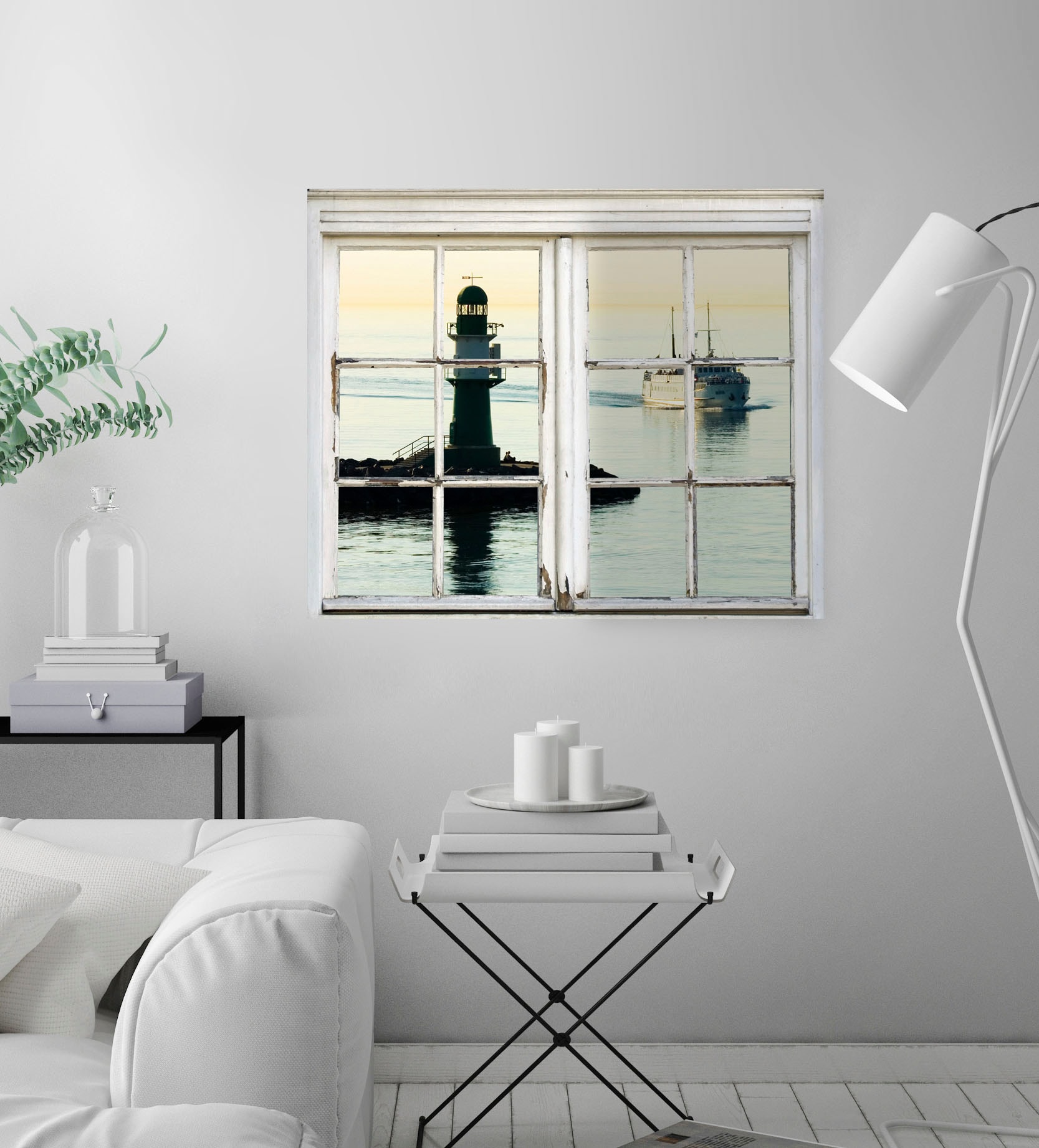 queence Autocollants muraux »Leuchtturm« Wandsticker, Wandbild, selbstklebend, Leuchtturm, 3D, Fenster