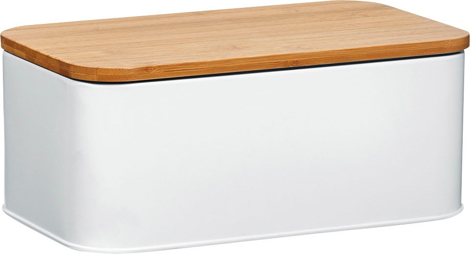 Dieser Brotkasten von Zeller Present wurde aus pulverbeschichtetem Metall und hochwertigem Bambus gefertigt und überzeugt durch sein modernes Design. Der Brotkasten erscheint in einer trendigen matten Optik und ist somit ein echter Blickfang in jeder Küche. Der Deckel des Brotkastens wurde aus hochwertigem Bambus gefertigt und sorgt dafür, dass das aufbewahrte Brot und Gebäck stets frisch und lange haltbar bleiben. Mittels der integrierten Lüftungslöcher auf der Rückseite des Brotkastens wird eine optimale Luftzirkulation ermöglicht. Selbstverständlich ist der Brotkasten hygienisch und geschmacks- und geruchsneutral.