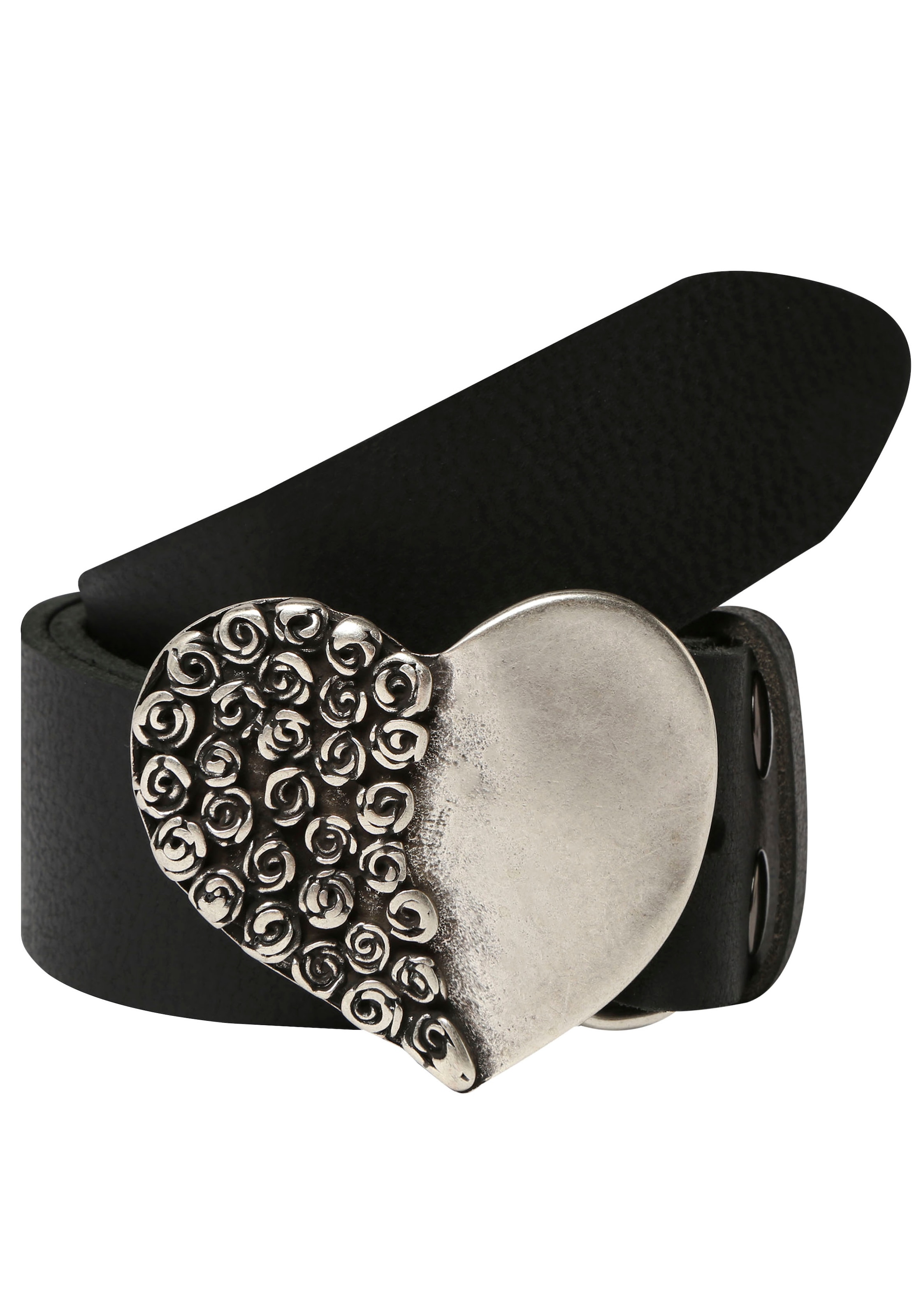 Rettungsring Gürtel Ceinture en cuir »Wasserbüffel Schwarz«, mit austauschbarer Schliesse »Rosenherz Halb«