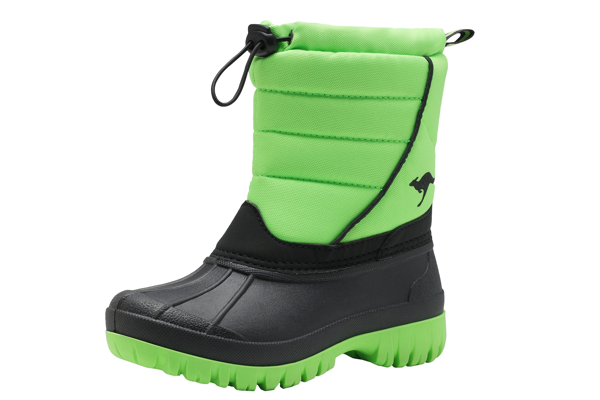 Es gibt kein schlechtes Wetter, nur falsche Kleidung — ausgestattet mit den Winterstiefeln von KangaROOS sind auch niedrige Temperaturen kein Problem. Der knöchelhohe Schuh mit runder Spitze hat eine Schnellschnürung. Damit bleibt das Schuhebinden erspart: Einfach rein schlüpfen, Schnürung anziehen, mit der Klemmschnalle fixieren und schon kann's losgehen. Die Gummi-Laufsohle ist sehr rutschfest und widerstandfähig bei Nässe. Durch das wasserabweisende Obermaterial aus Synthetik bleiben die Füsse auch bei leichtem Regen trocken.