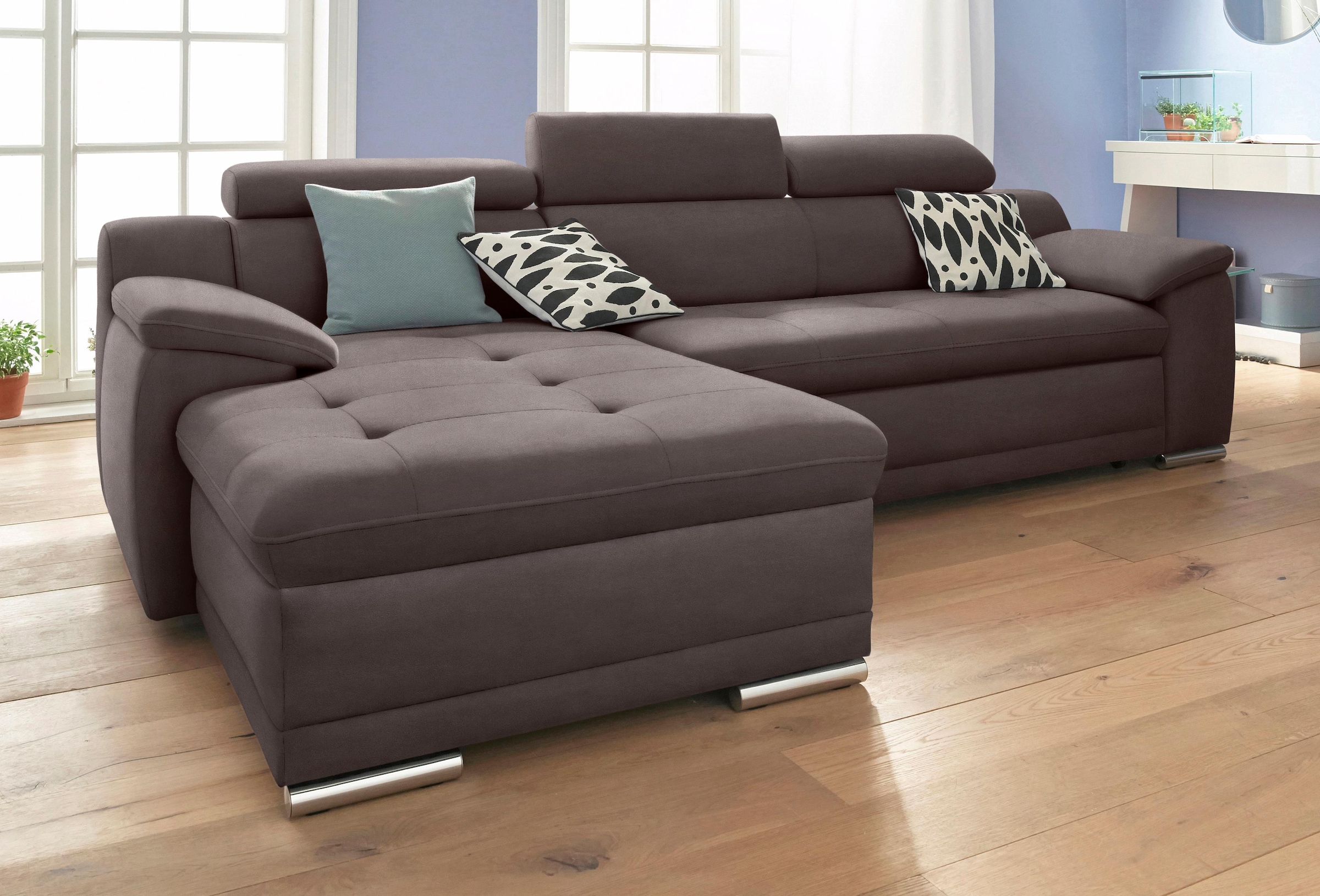 designwerk Canapé d'angle »New York L-Form, anmutendes Designsofa« mit moderner R&ung im Rücken