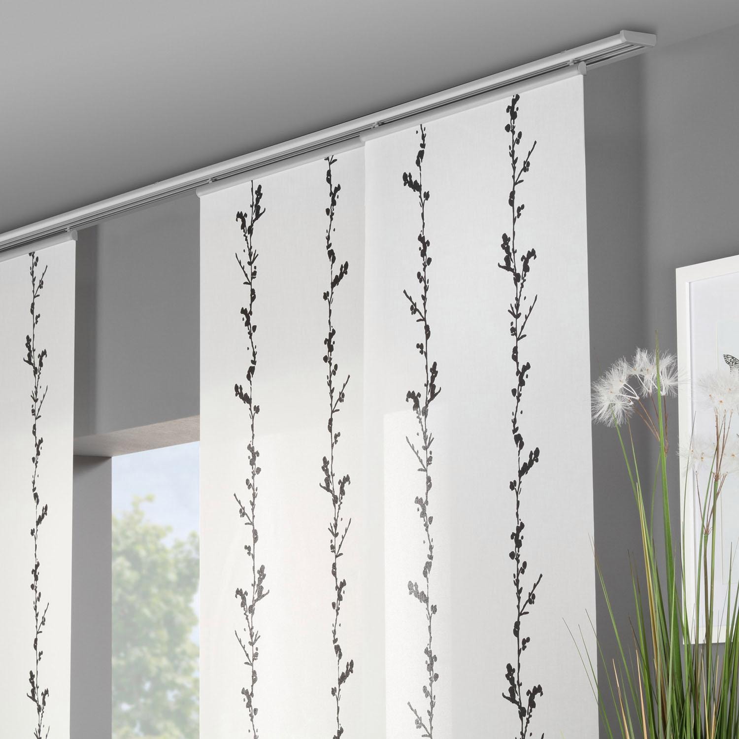 Note sur la décoration | Eine Schiebegardine ist eine schmale, glatt hängende Stoffbahn, die sich sowohl als Sichtschutz als auch zur Raumteilung eignet. Durch die Schiebetechnik sind Schiebegardinen sehr flexibel einsetzbar. |