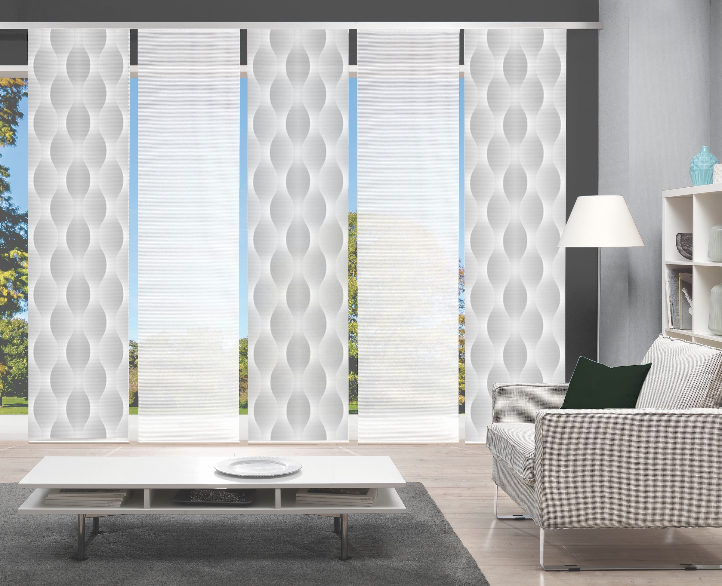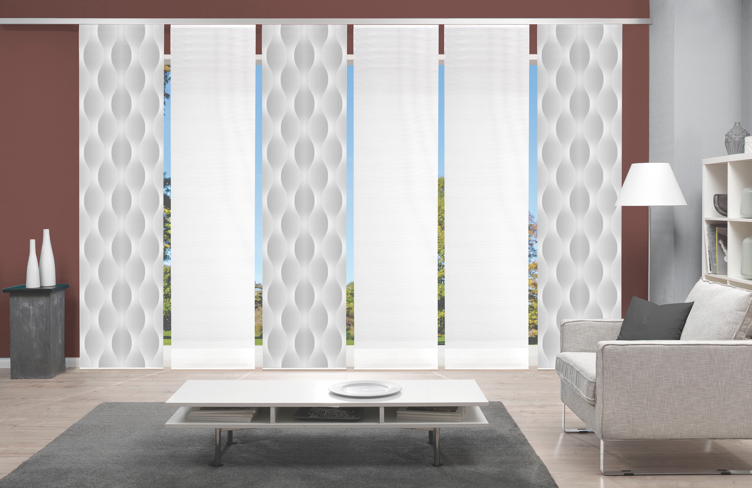 Note sur la décoration | Eine Schiebegardine ist eine schmale, glatt hängende Stoffbahn, die sich sowohl als Sichtschutz als auch zur Raumteilung eignet. Durch die Schiebetechnik sind Schiebegardinen sehr flexibel einsetzbar. |