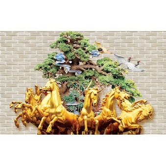 Vliestapete, Muster mit Pferden gold weiss, Poster, Dekoration, Landschaft, Stadt, Stilleben, verschiedene Grössen von 2m- 10m Breite, wählen Sie Ihre Grösse