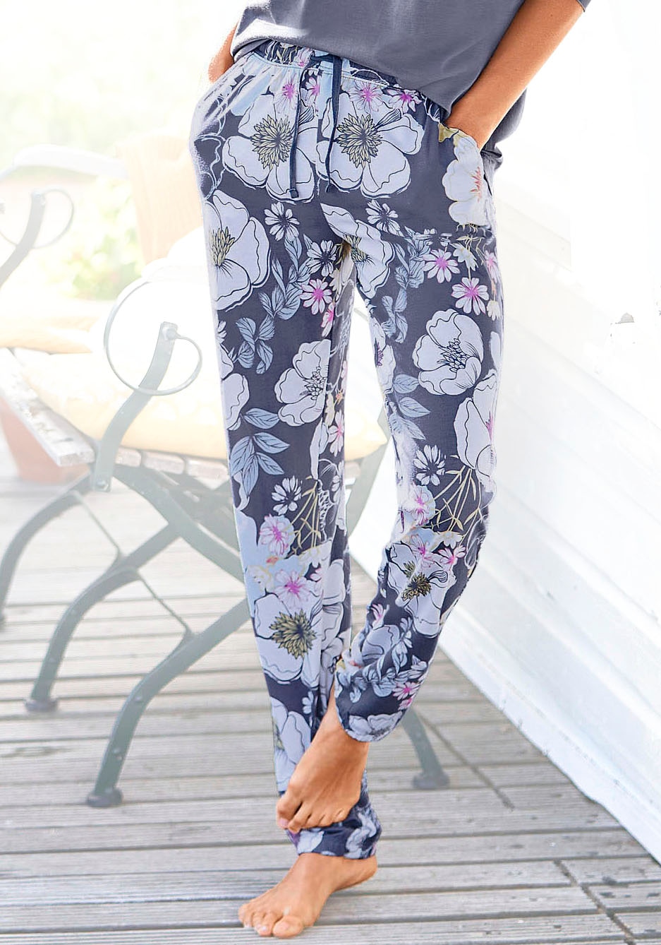 - Lange Hose mit elastischem Tunnelzugbund und seitlichen Eingrifftaschen
