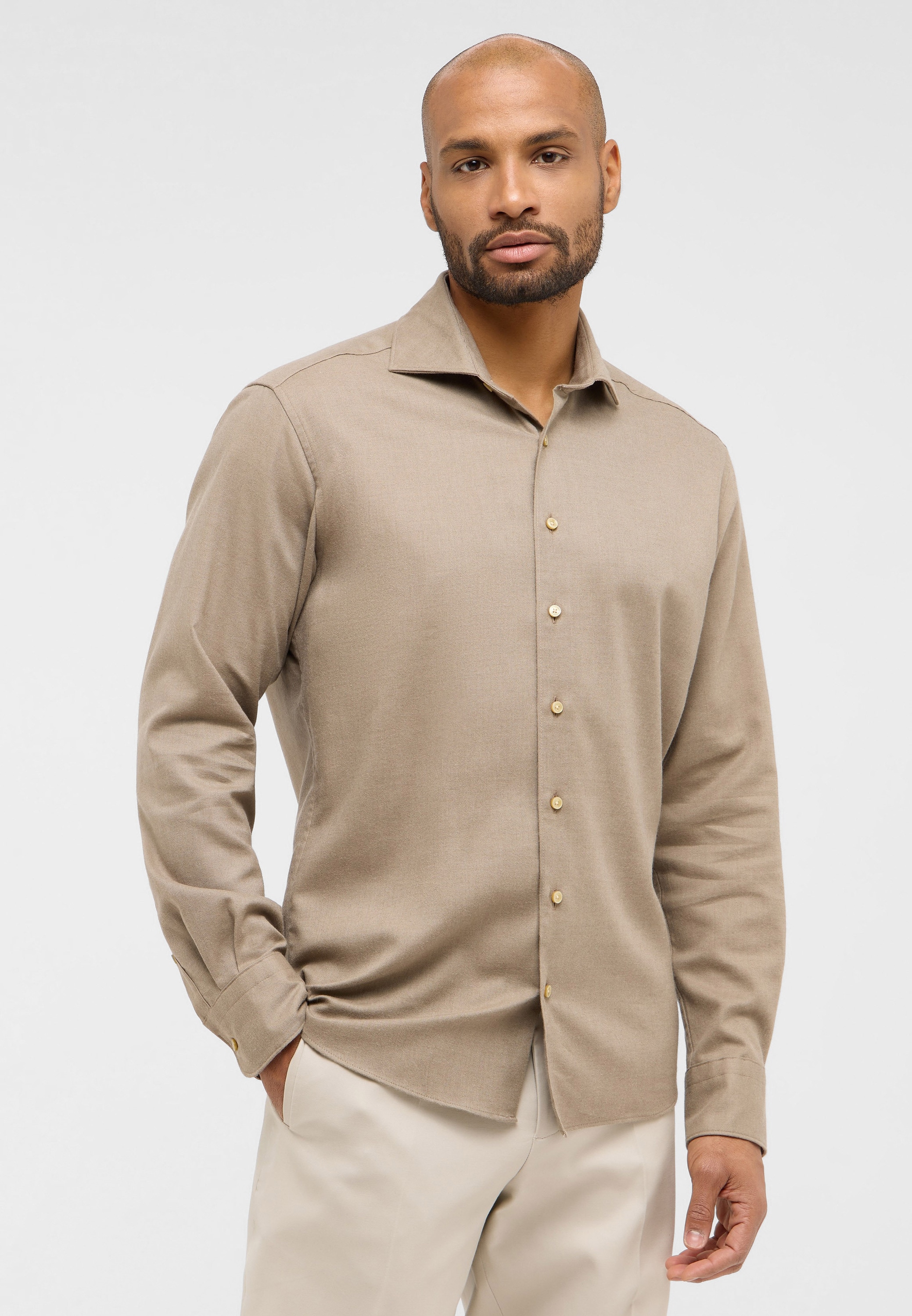 Sportiv und elegant zugleich - egal, wie Sie dieses unifarbene Herrenoberhemd kombinieren - einem souveränen und stilsicheren Auftritt steht nichts im Wege.
