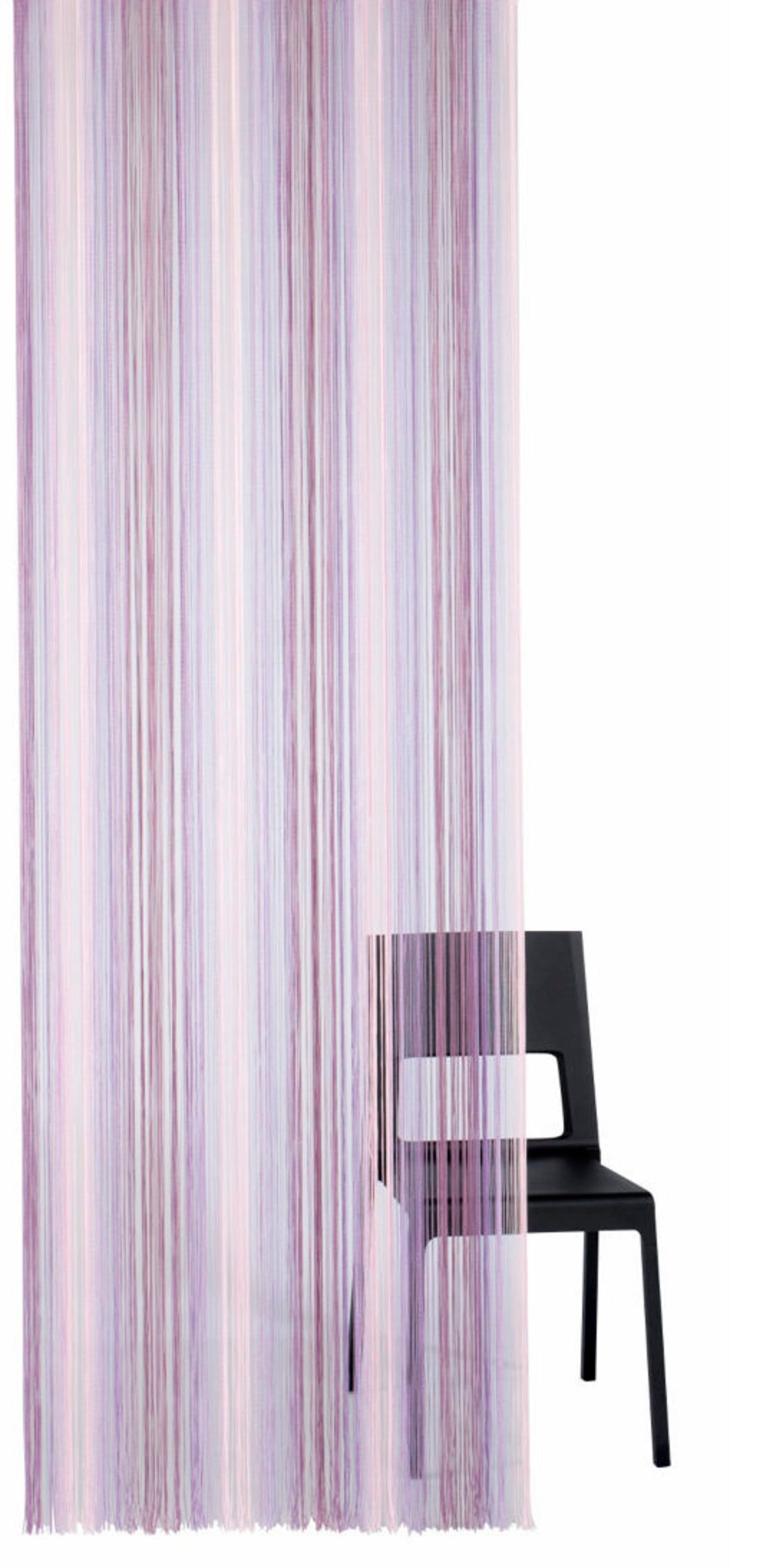 Hinweis Dekoration | Fadenvorhänge eignen sich durch die senkrechten Fäden auch als Raumteiler oder an Türen (z. B. als Insektenschutz). Die Optik lässt sich leicht verändern, indem man die Fadenvorhänge gerafft dekoriert. |
