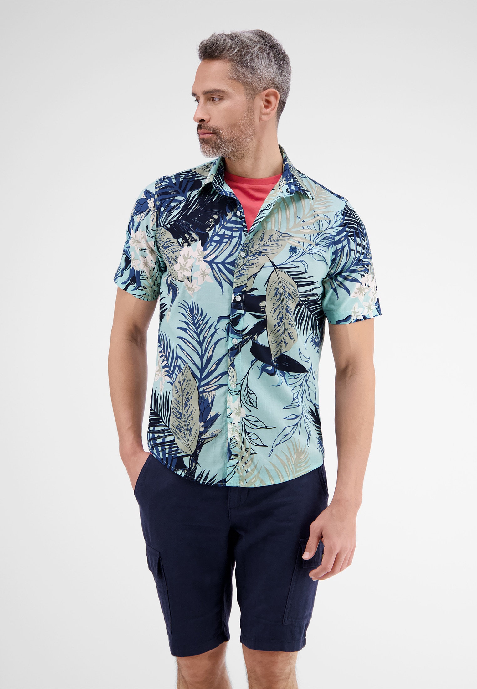 LERROS Kurzarmhemd in weicher Baumwollqualität mit floralem Alloverprint in Hawaii-Design, Kent-Kragen und Logostick. Ein lässiger, sommerlicher Hemdenstyle *for every day* in Grosser Grösse!
