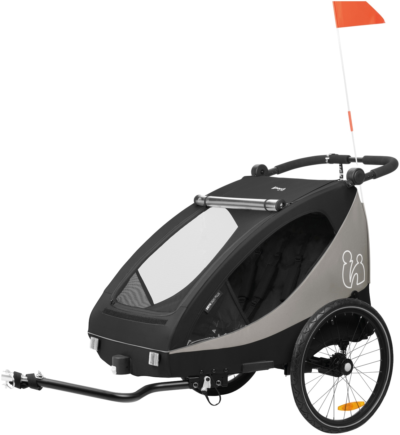 - Fahrradanhänger & Buggy in Einem: »2in1 Dryk Duo, melange grey« mit hochwertigen Lufträdern und Gummi-Vorderrad