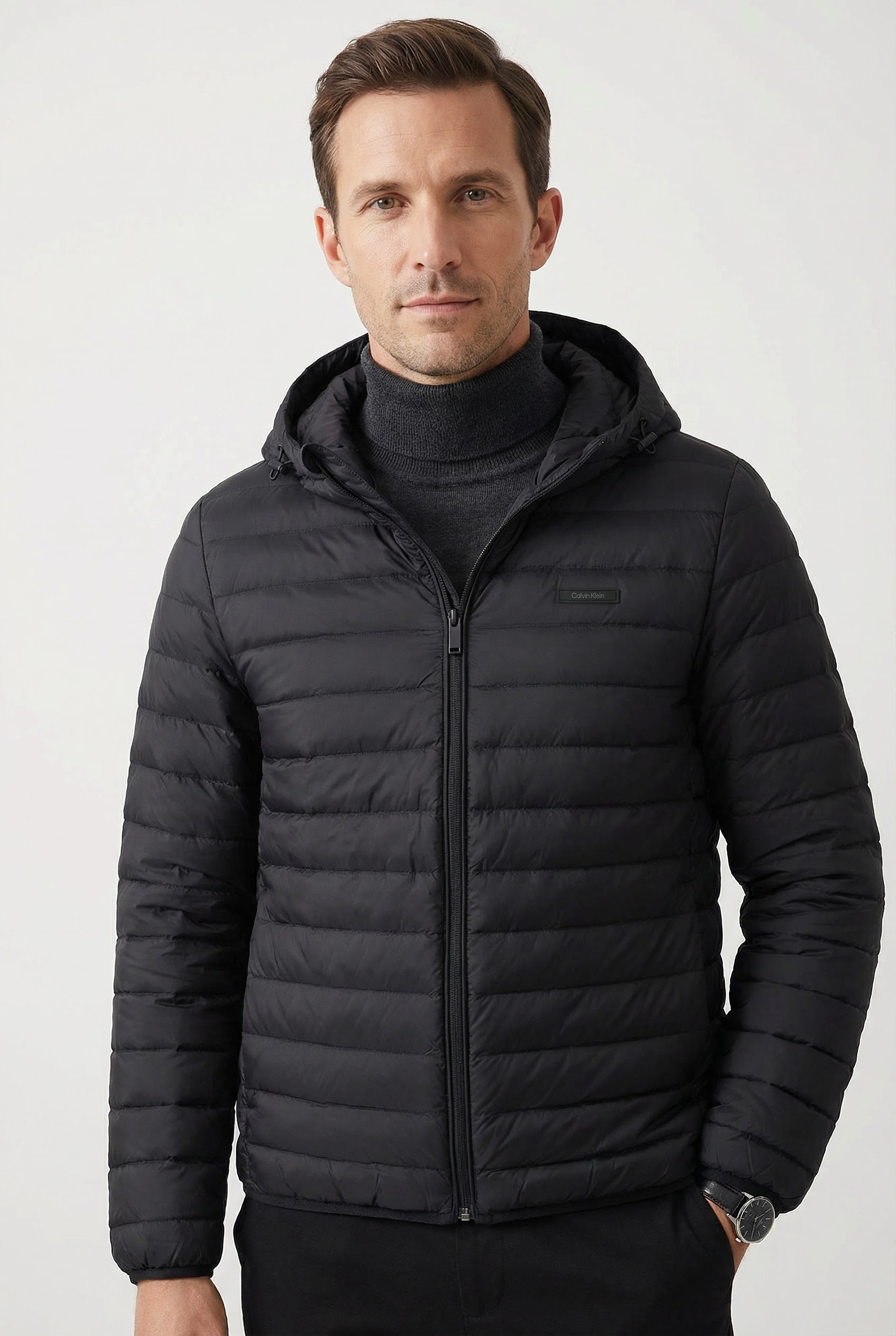 Die Bomberjacke für Männer von Calvin Klein peppt jedes Outfit auf. Die Jacke mit Stehkragen geht bis zur Hüfte. Sowohl an den langen Ärmeln als auch am Rumpfabschluss ist ein Rippbündchen. In den Reissverschlusstaschen lassen sich kleine Gegenstände sicher verstauen. Aufgelockert wird der Look mit einem Markenlabel. Die Bomberjacke aus Webstoff liegt sehr leicht auf der Haut. Mit ihr lässt es sich auch noch gemütlich im Garten sitzen, wenn die Sonne schon untergegangen ist.