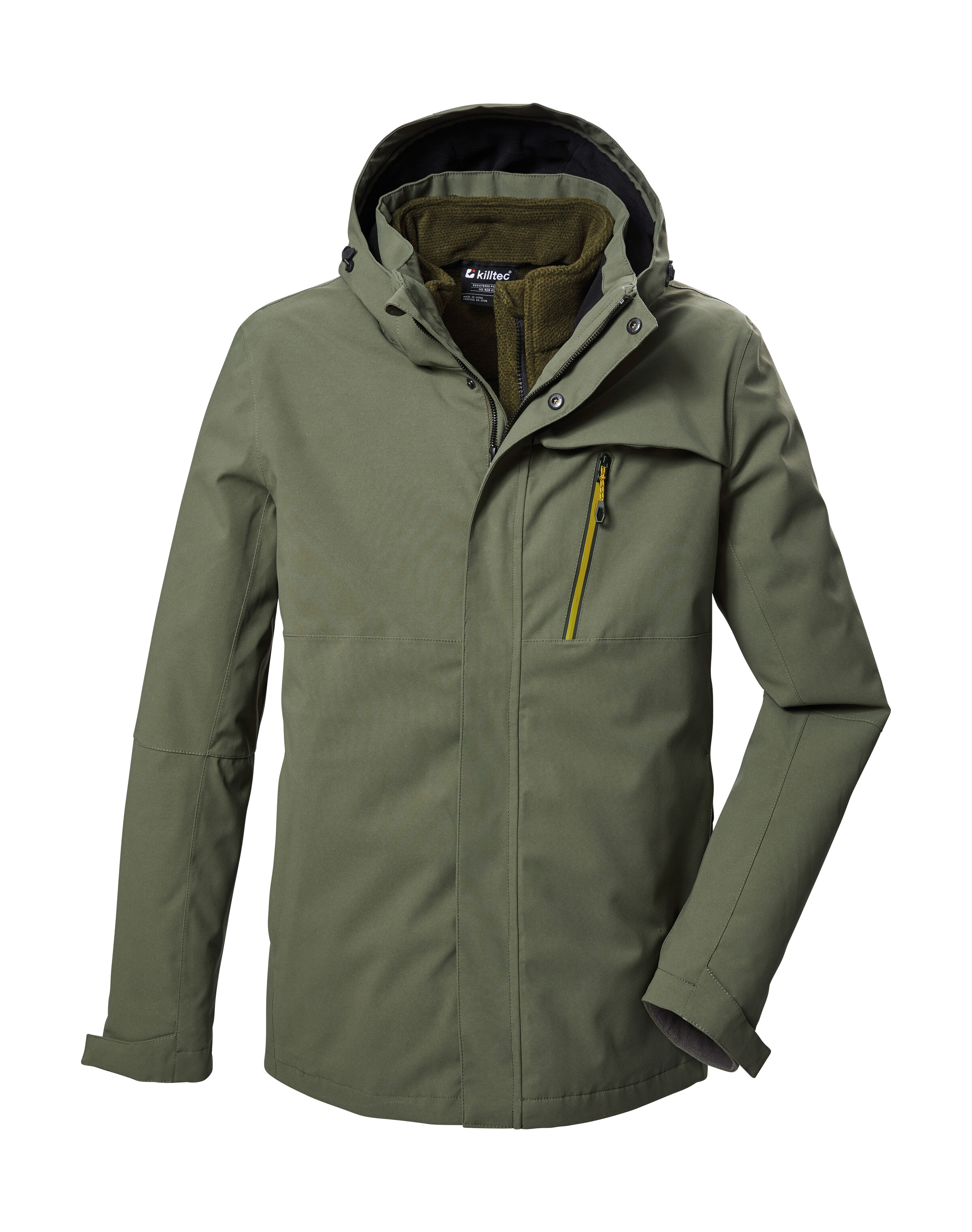 Die Herren Funktionsjacke in Daunenoptik von killtec in Colourblock Design ist nicht nur ein absoluter Hingucker, sondern überzeugt auch durch funktionale Eigenschaften. Mit einer 10.000 mm Wassersäule und der atmungsaktiven Beschichtung ist die Jacke wasser- und windabweisend. Die Kapuze ist weitenregulierbar. Die Weite von Saum und Ärmelbündchen kann verstellt werden. Zwei Zippertaschen und eine Innentasche bieten Platz für Handy, Schlüssel und Co. Die Jacke ist mit der leistungsstarken, regenerativen Ausru¨stung Teflon EcoElite™ imprägniert. Dieses Textilrepellent ist pflanzenbasiert und hat eine nicht fluorierte Fleckschutztechnologie, die Wasser- und wasserbasierte Flecken abweist.