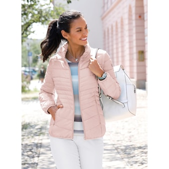 Ein hochwertiger und gleichzeitig aussergewöhnlich modischer Begleiter für die Übergangszeit: atmungsaktive Leicht-Daunen-Steppjacke in absoluter Premium-Qualität. Der doppelte Stehkragen ist weich gefüttert und innen kontrastfarbig abgesetzt, die Abschlüsse der langen Ärmel sind ebenfalls kontrastfarbig. Zwei praktische Taschen in Kontrastfarbe mit Zier-Knopf und eine Innentasche. Der Saum ist leicht abgerundet und bleibt hinten etwas länger. Abgerundete Seitenschlitze mit Tunnelzug und Bindeband sorgen für die tolle Optik und können individuell angepasst werden. 55% Polyester, 45% Polyamid. Futter: 55% Polyester, 45% Polyamid. Füllung: 90% Daunen, 10% Federn. Reinigung.