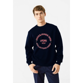 Trendiges Herren-Sweatshirt von Jack & Jones. Mit einem weiten Schnitt. Die Ärmel sind lang. Es ist mit einem lässigen Aufdruck versehen. Das Oberteil ist weich und angenehm auf der Haut dank der angerauten Innenseite aus Sweatstoff.
