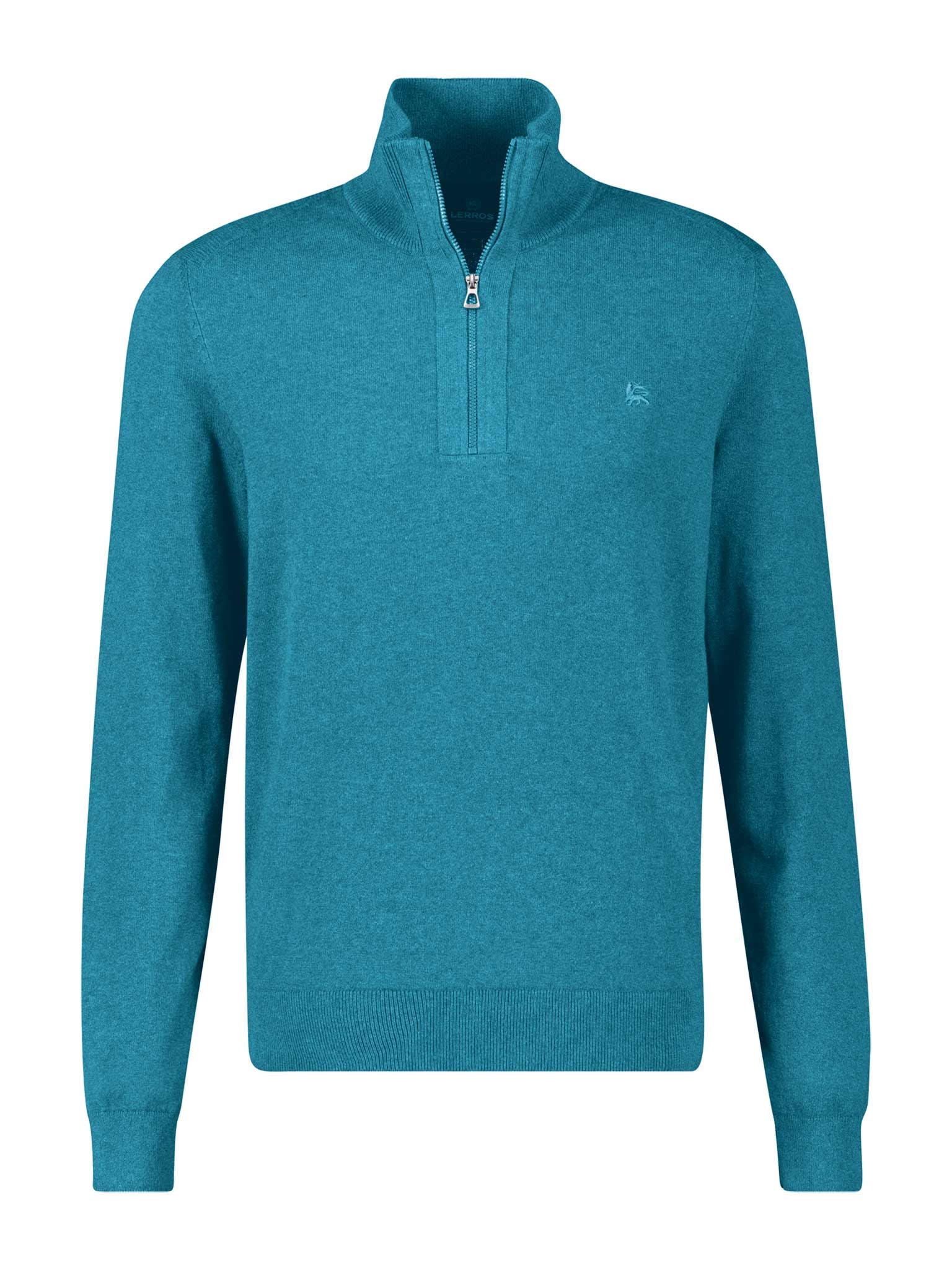 Klassischer Troyer für Männer von LERROS mit Logo. Mit einem normalen Schnitt. Die Ärmel sind lang. Ausserdem hat der Pullover einen Reissverschluss. Das Oberteil ist besonders bequem und wärmt durch die Strick-Qualität.