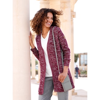Strickjacke Kombi-Style aus flauschig-weichem Effektgarn im Linksstrick. Mit Rundhals-Ausschnitt und Langarm. Durchgeknöpft, mit Schmuckknöpfen. 61% Polyacryl, 26% Wolle, 12% Polyamid, 1% Elasthan. Maschinenwäsche.