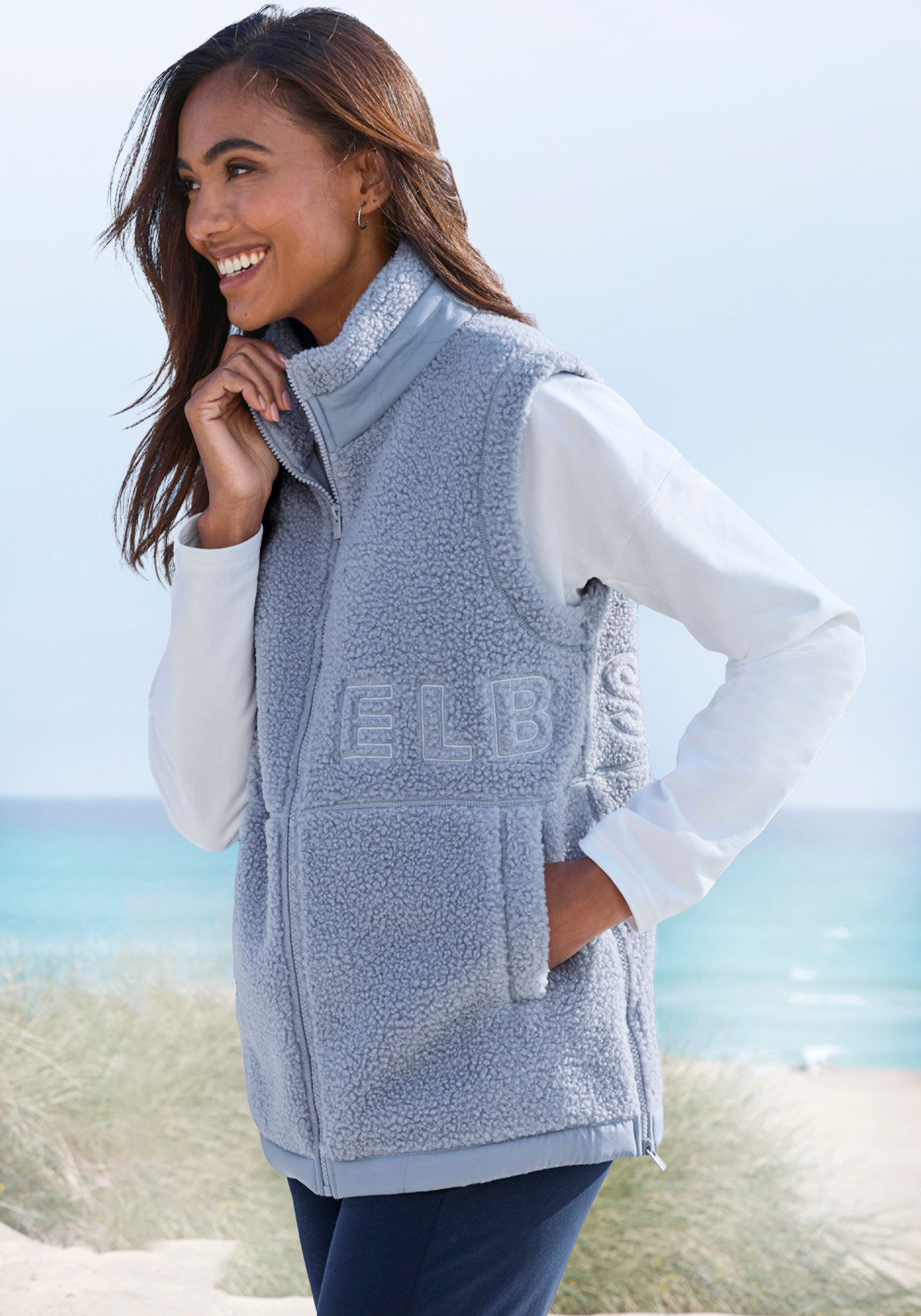 - winddichtes Softshell-Material auf der Vorderseite