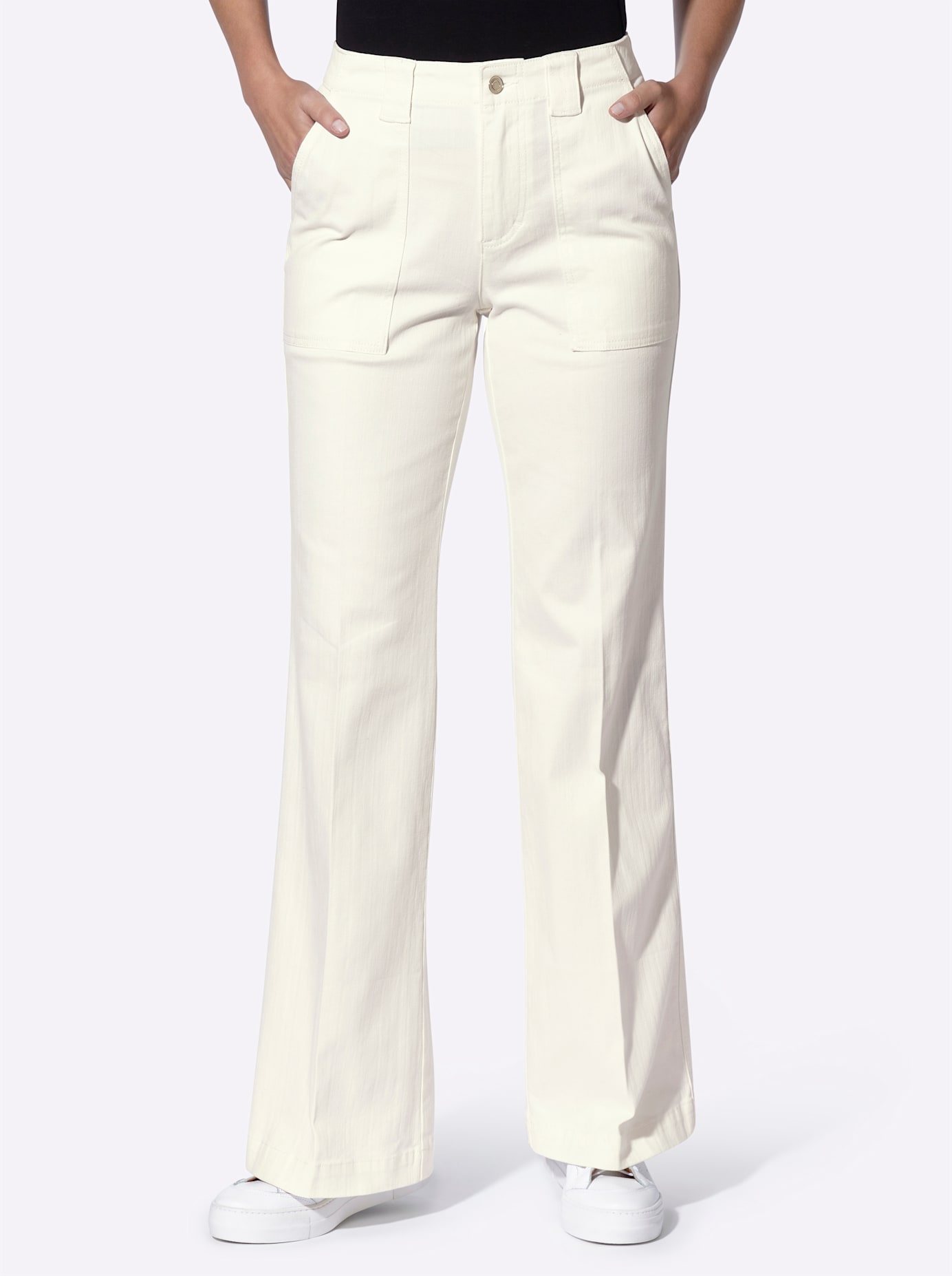 Jeans Lässig-bequeme 5-Pockets mit modisch weitem Bein. Hochwertige, trageangenehme Stretch-Qualität für optimale Passform. Normale Leibhöhe. Comfort Fit. Fussweite ca. 57 cm. Unterstützt die Initiative Cotton made in Africa. Blue-bleached: 98% Baumwolle, 2% Elasthan. Ecru: 97% Baumwolle, 3% Elasthan. Maschinenwäsche.