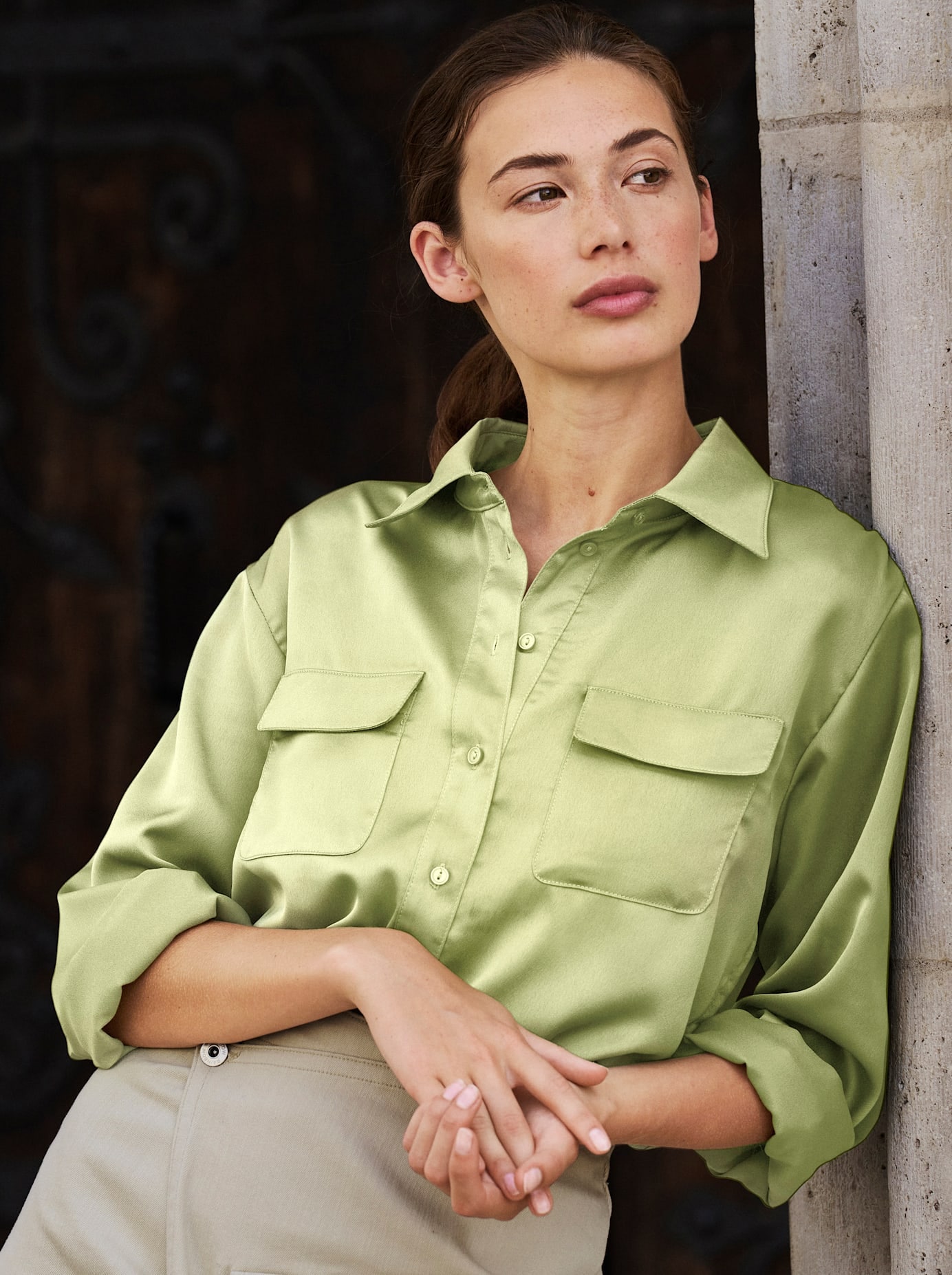 Bluse Mit Hemdkragen und Knopfleiste. Raffinierter Langarm mit ausgestelltem Saum und breiten Bindebändern. Falte im Rücken für modisch weite Silhouette. 100% Lyocell (TENCEL). Maschinenwäsche.