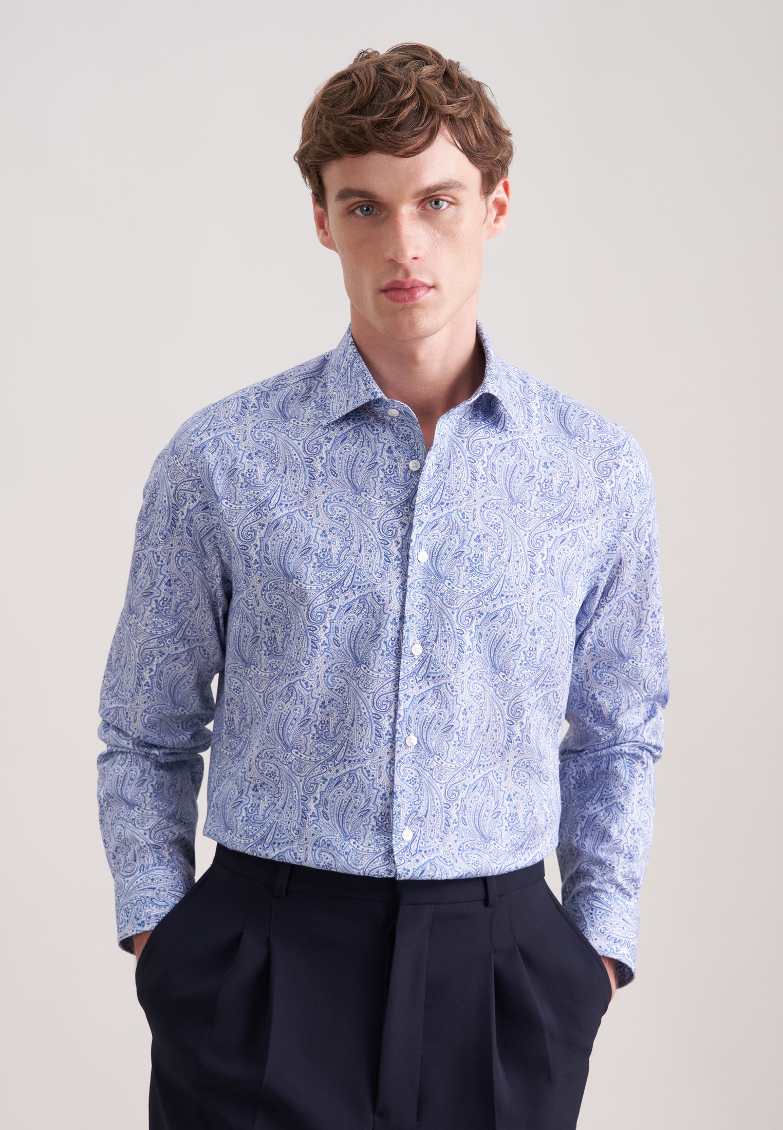 Maskuline Ästhetik: Das 1/1-Business Hemd von Seidensticker aus der "SMART ESSENTIALS" Kollektion erweitert Ihre Garderobe um einen hochwertigen Look, der den Geist der Zeit trifft. Ob Homeoffice, Veranstaltungen, Freizeit oder Büro - es ist ein eleganter Begleiter, der durch schlichte Eleganz überzeugt. Die Silhouette dieses Business Hemds in der Passform Shaped ist figurbetont ohne dabei zu eng anzuliegen. Das schicke Druck-Muster macht es zu einem absoluten Must-have. Dieses Hemd verkörpert klassische Eleganz mit modernem Schliff. Dank Covered-Button-Down-Kragen wird der smarte Charakter besonders unterstrichen.