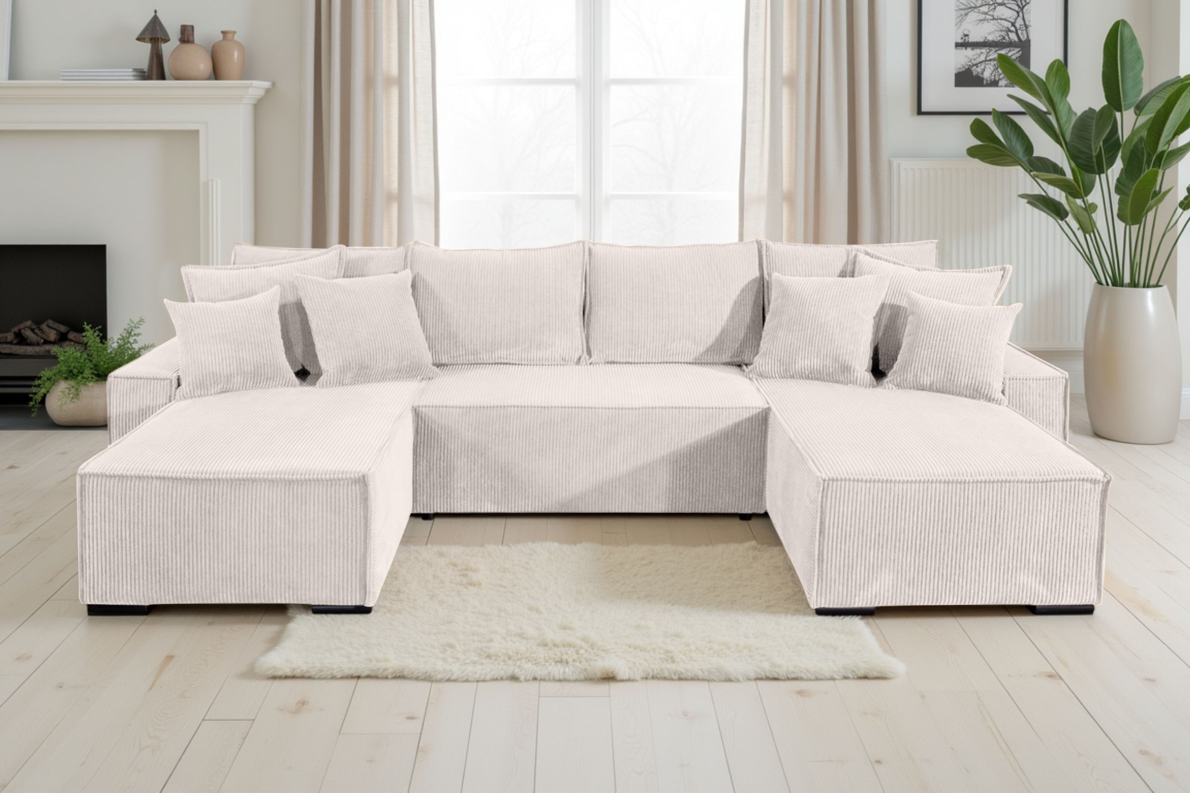 - RAUMWUNDER MIT STIL – Die Kombination aus grosszügiger U-Form und schlanker Linienführung schafft viel Sitzfläche, ohne den Raum zu überladen.