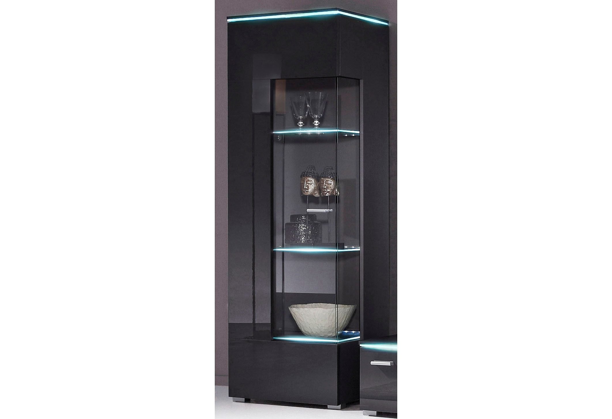 Faits intéressants | Beleuchtung bitte extra bestellen. Wir empfehlen für die Vitrine 1x 5er Set LED-Glaskantenbeleuchtung in blau (Artikelnummer: 824195) oder in weiss (Artikelnummer: 800527). Inkl. Trafo und Zuleitung. |