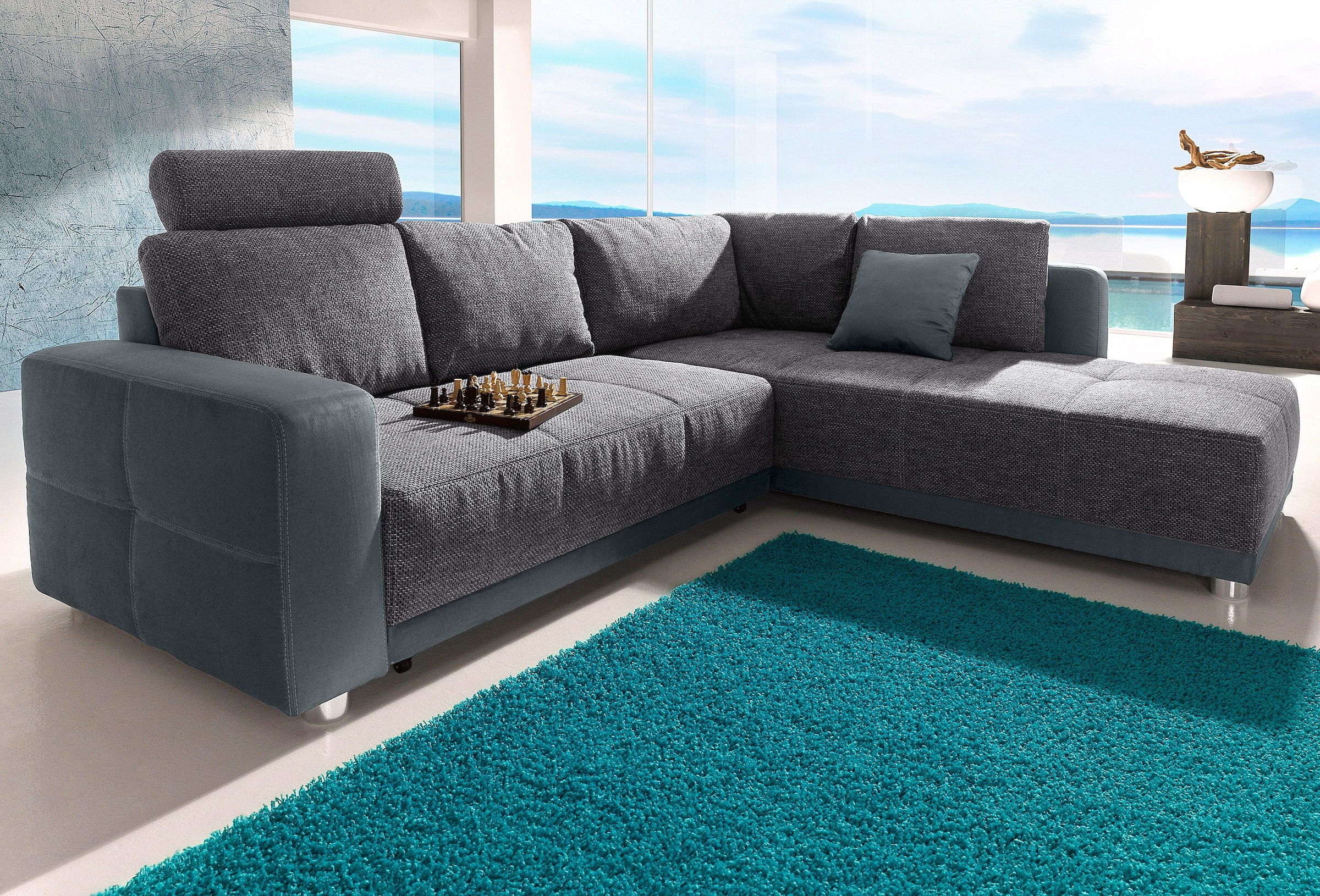 Jockenhöfer Gruppe Canapé d'angle »Orlando L-Form« mit Bettfunktion, Bettkasten und Federkern, mit 1 oder 3 Kopfstützen