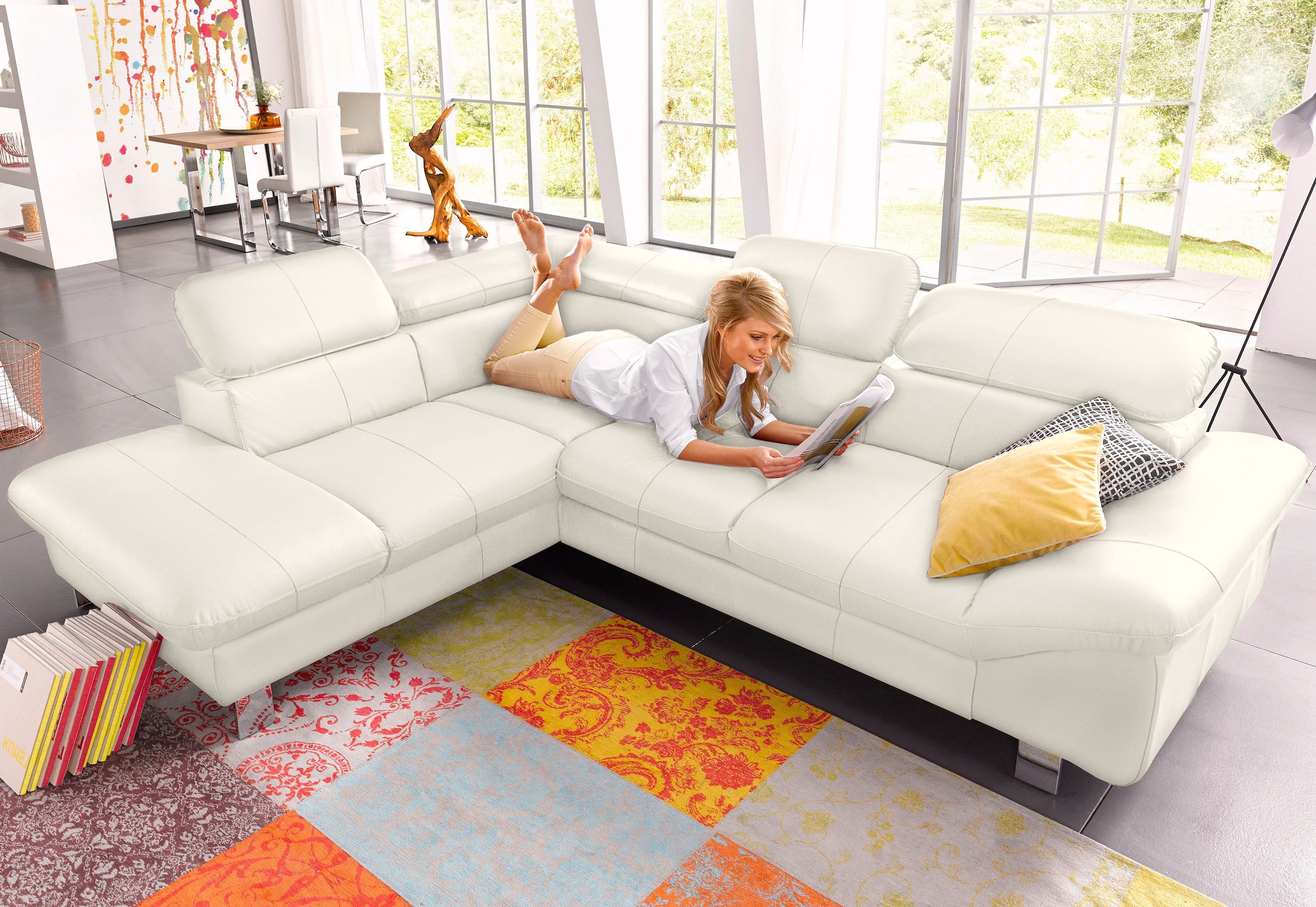 Composition du matériel d'information | Luxus-Kunstleder;LEDER BEEFY (ein abgedecktes Spalt-Rindsleder) im Sitz ,Korpus in Kunstleder;NaturLEDER (echtes Rindsleder);Kunstleder SOFTLUX®;LEDER/ NaturLeder: Bitte beachten Sie, dass Lederbezüge mehr Nähte aufweisen als Stoffbezüge. |