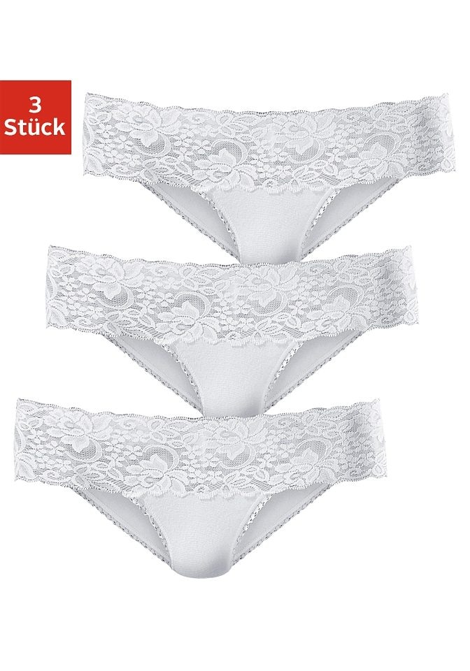 Lascana Brasilslips im 3er-Pack. Mit kleiner Zierschleife vorn. Zarte Spitze am Beinausschnitt. Aus weicher Baumwoll-Stretch-Qualität.