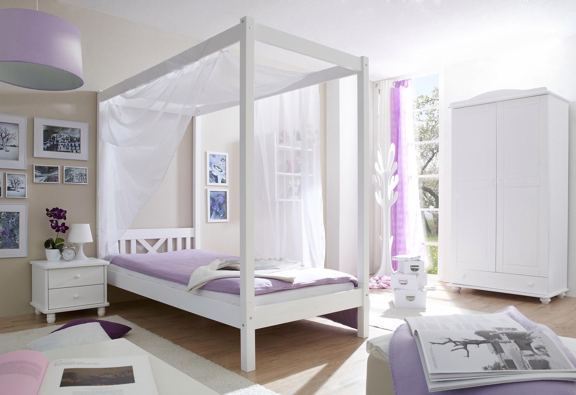 Faits intéressants | Dieses traumhafte Himmelbett aus FSC®-zertifizierter massiver Kiefer ist ein absoluter Hingucker in jedem Schlafraum. Umbaufähig zum Einzelbett. Details: