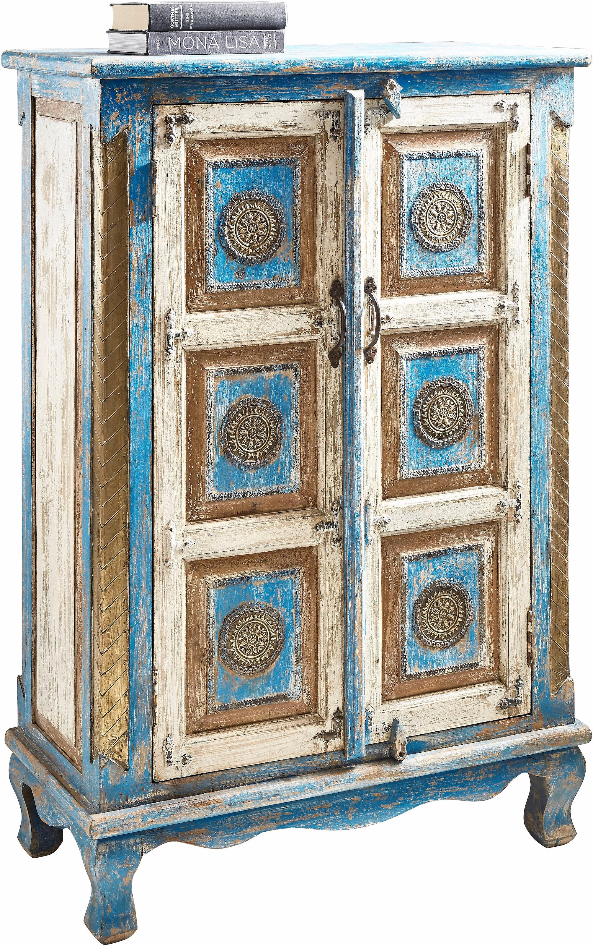 Home affaire Buffet haut Stauraumschrank, Höhe 120 cm, mit aufwendiger Schnitzerei
