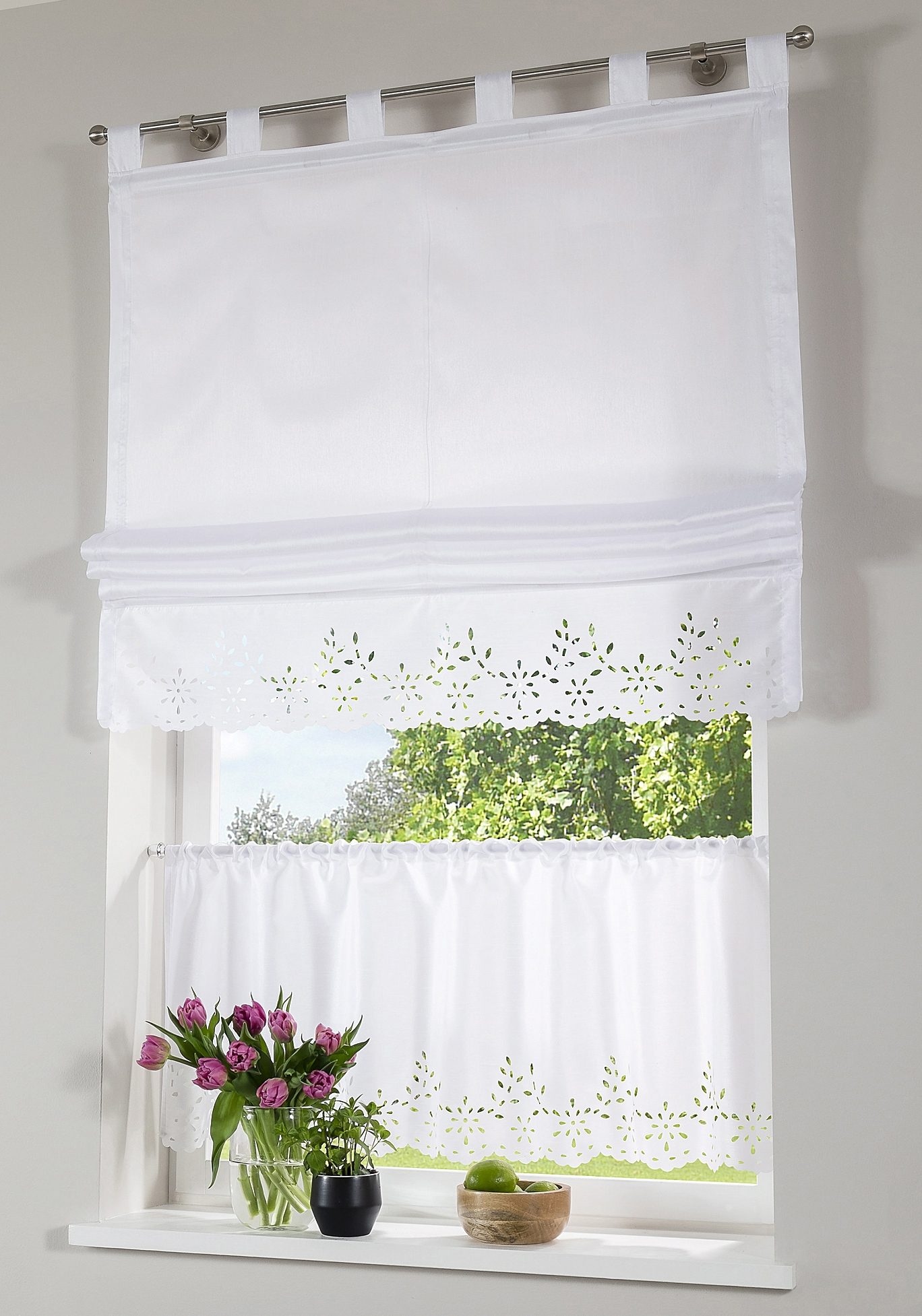 Hinweis Aufhängung | Aufhängung erfolgt mittels Schlaufen an der Gardinenstange. |