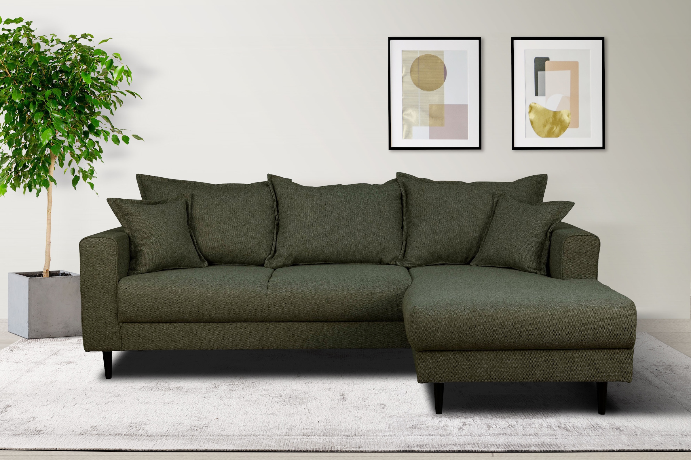- Inklusive loser Zier- und Rückenkissen
