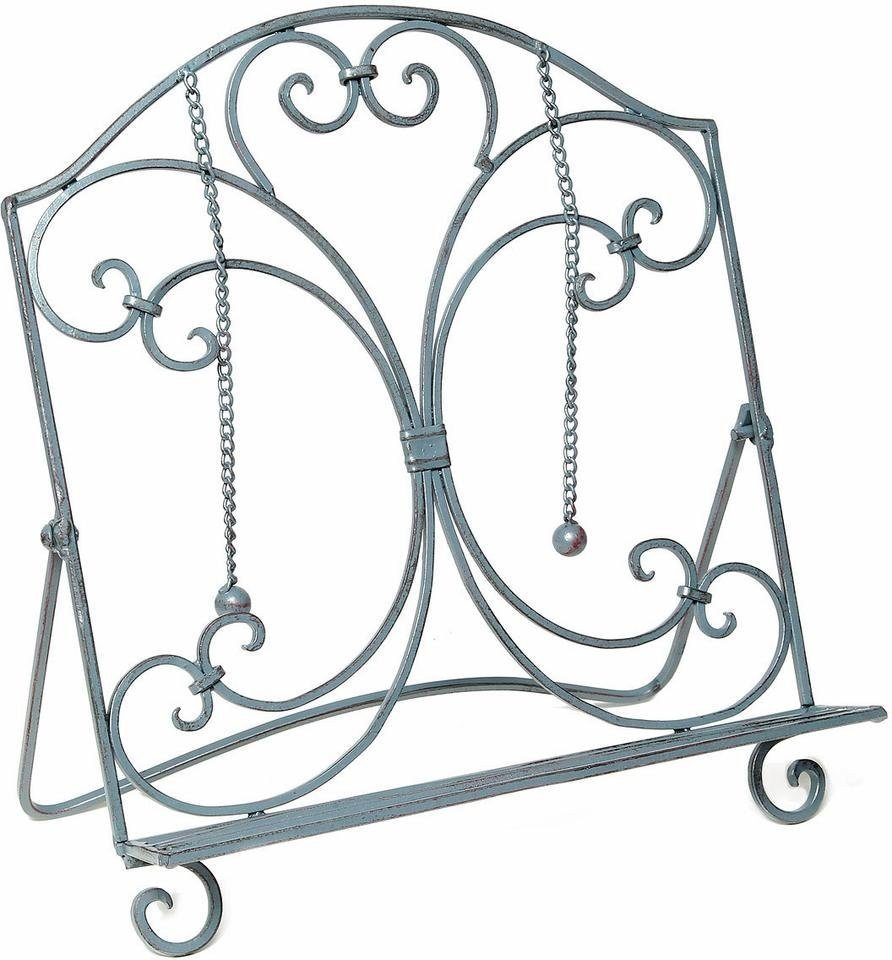 Der praktische Kochbuchhalter »Antik II« von Home affaire erweist sich als nützliche Haushaltshilfe in der Küche. Standfest hält er das Kochbuch in aufrechter Position, sodass die Rezepte während des Kochens leicht zu lesen sind. Dank der dafür vorgesehenen Halterungen bleibt die gewählte Buchseite offen, ohne dass die Seiten umblättern. Zudem ist der Buchständer im schönen Landhausstil gehalten und wird somit zum ansprechenden Wohnaccessoire in nostalgischer Optik. Er eignet sich auch als Geschenkidee. Begeistert mit optischen sowie praktischen Eigenschaften: der Kochbuchhalter »Antik II« von Home affaire.