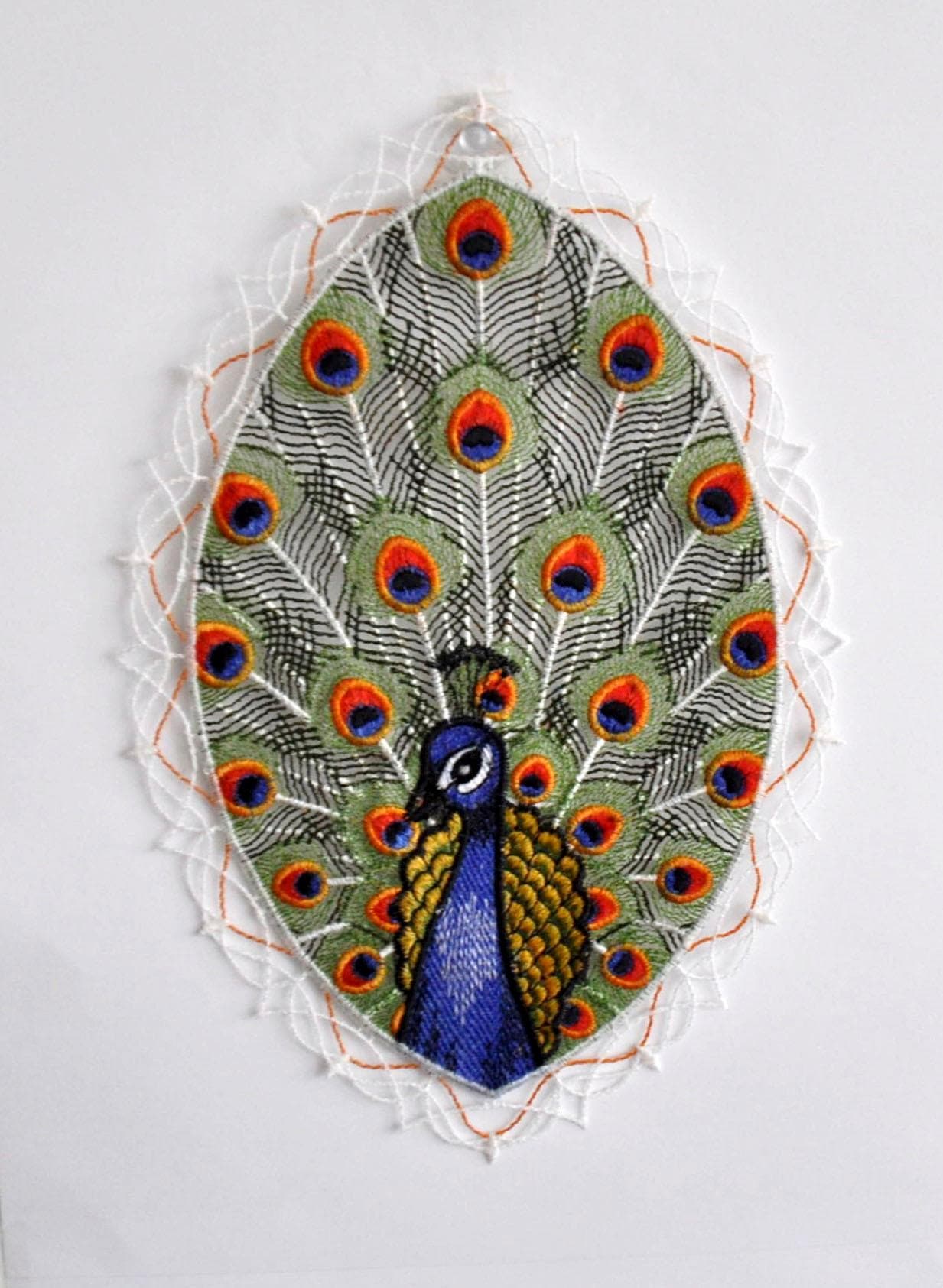 Stickereien Plauen Tableau de fenêtre »Pfau«