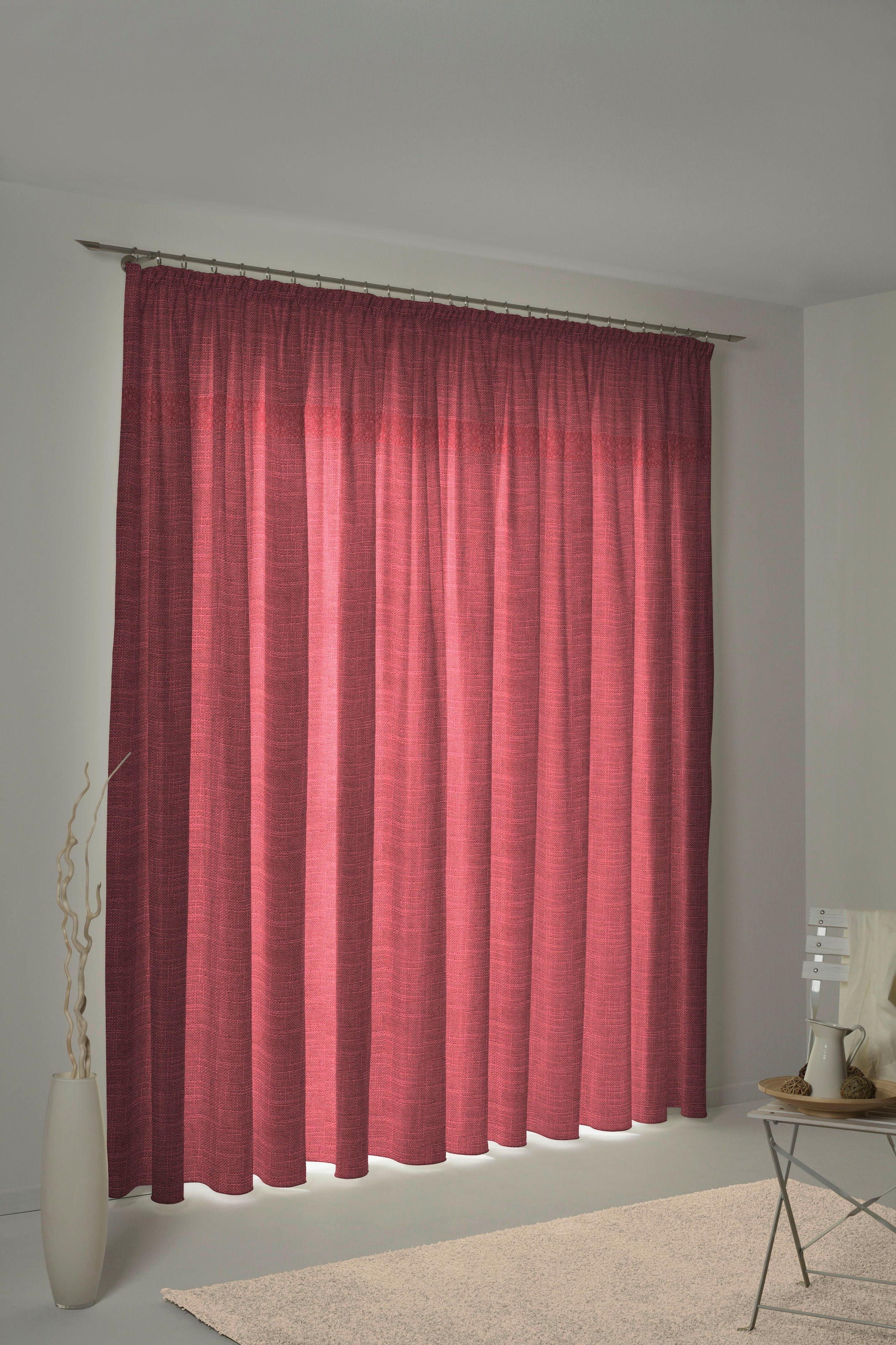 | Hinweis Dekoration | Die angegebenen Masse sind Stoffmasse.;Am Fenster fertig dekoriert, reduziert sich die Breite um ca. die Hälfte. |