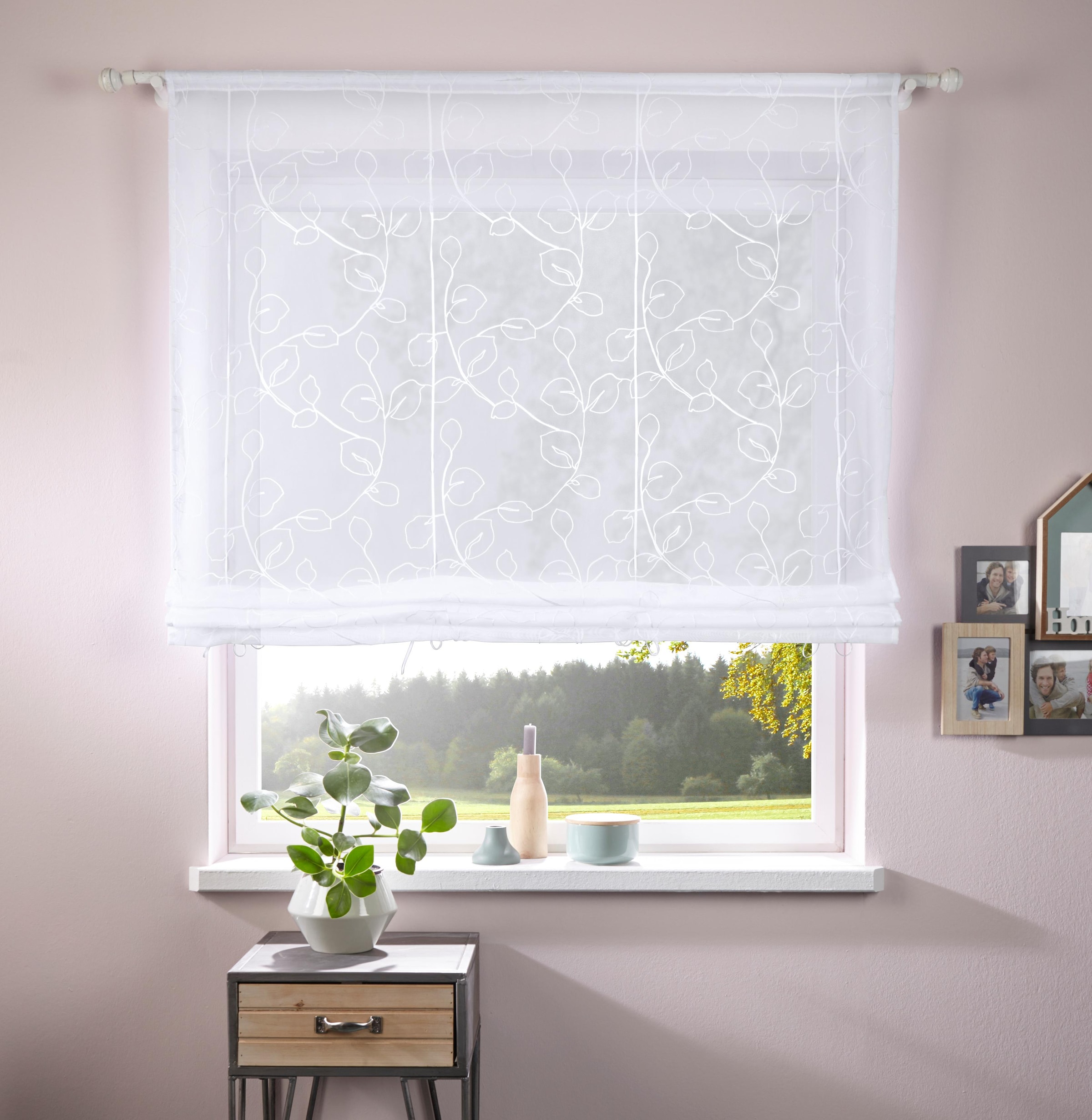 Transparentes Voile-Raffrollo "Adele" mit Stickerei.