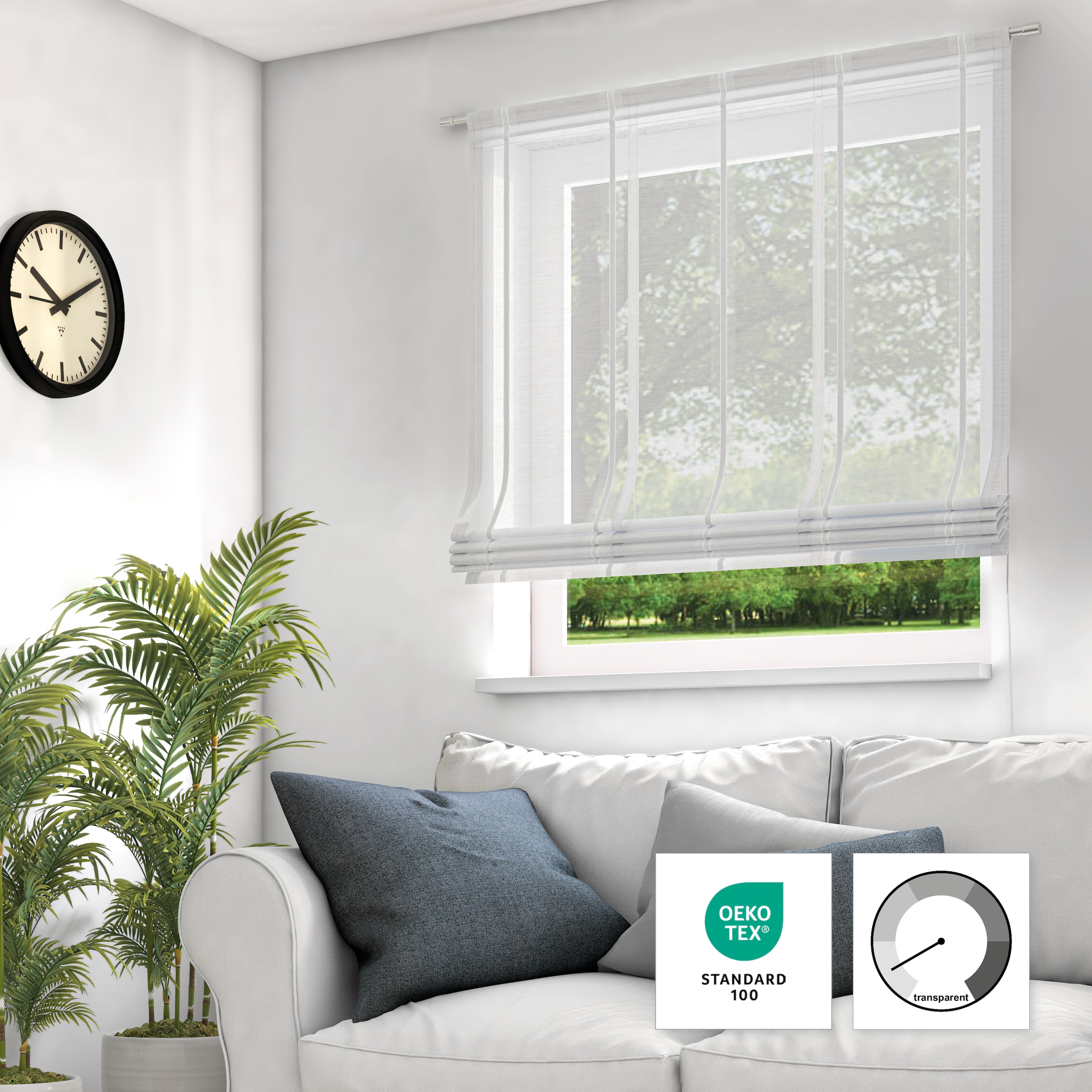 - Einfache Aufhängung mittels Stangendurchzug an der Gardinenstange oder direkt am Fenster (inkl. Montagezubehör)