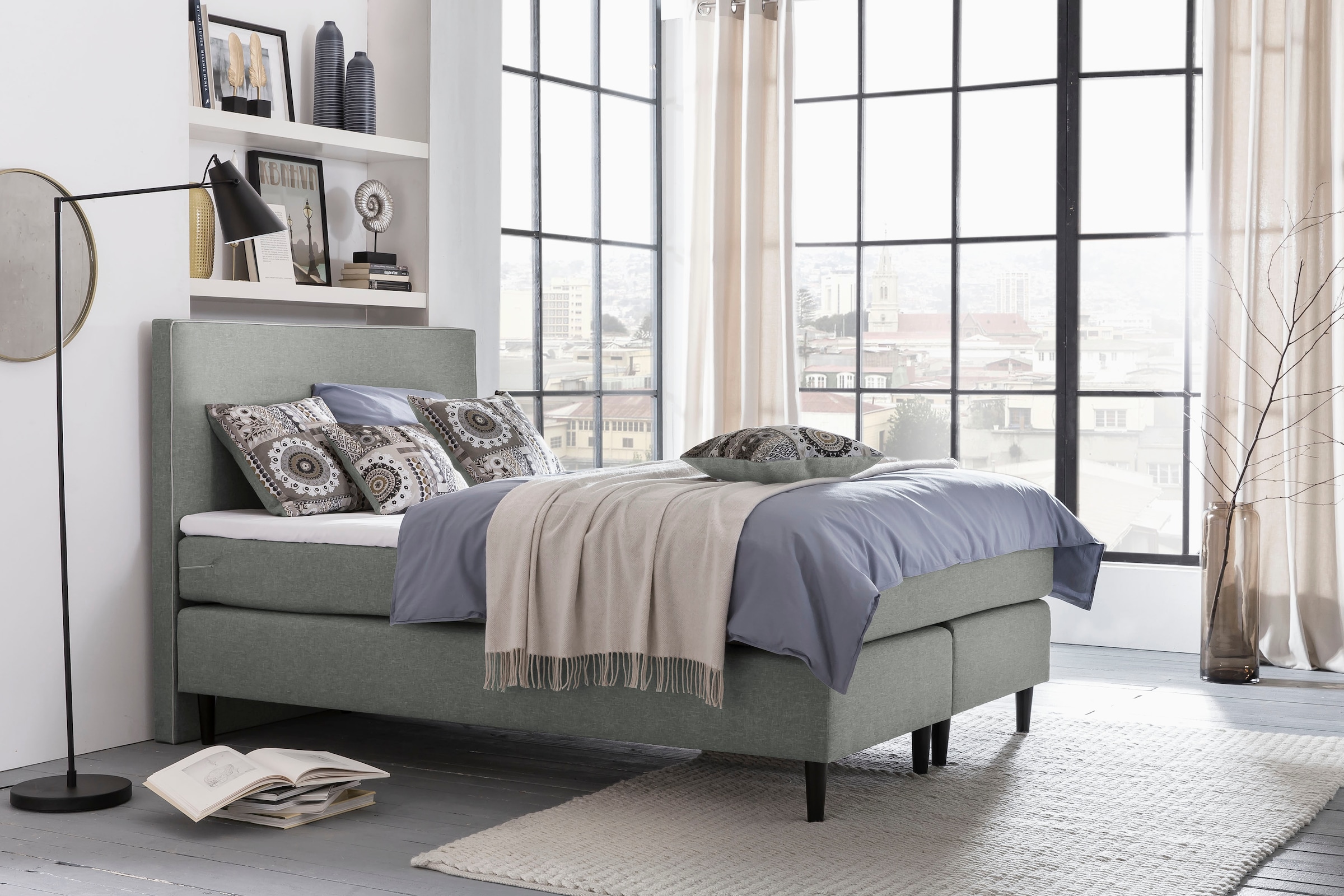 - Lit boxspring »Amelia« mit 7-Zonen-Tonnentaschenfederkern-Matratze und Zierkissen,...grüne bettenPrix actuel2149.00 CHF