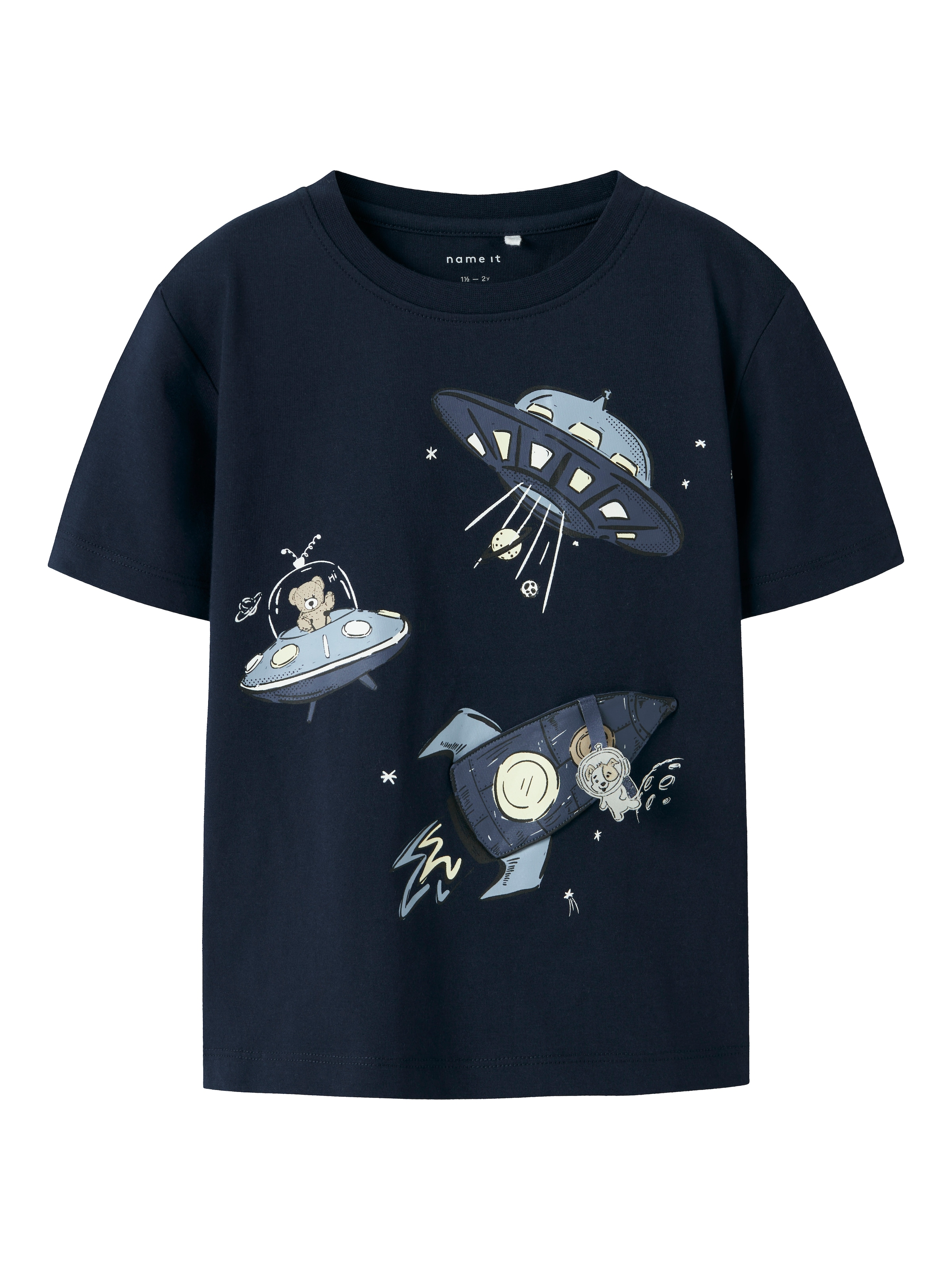 - T-Shirt »RAKETE« Kurzarm, Basic-Passform, mit trendigem Druck, RundhalsausschnittKIDSWORLDAktueller Preis9.90 CHF