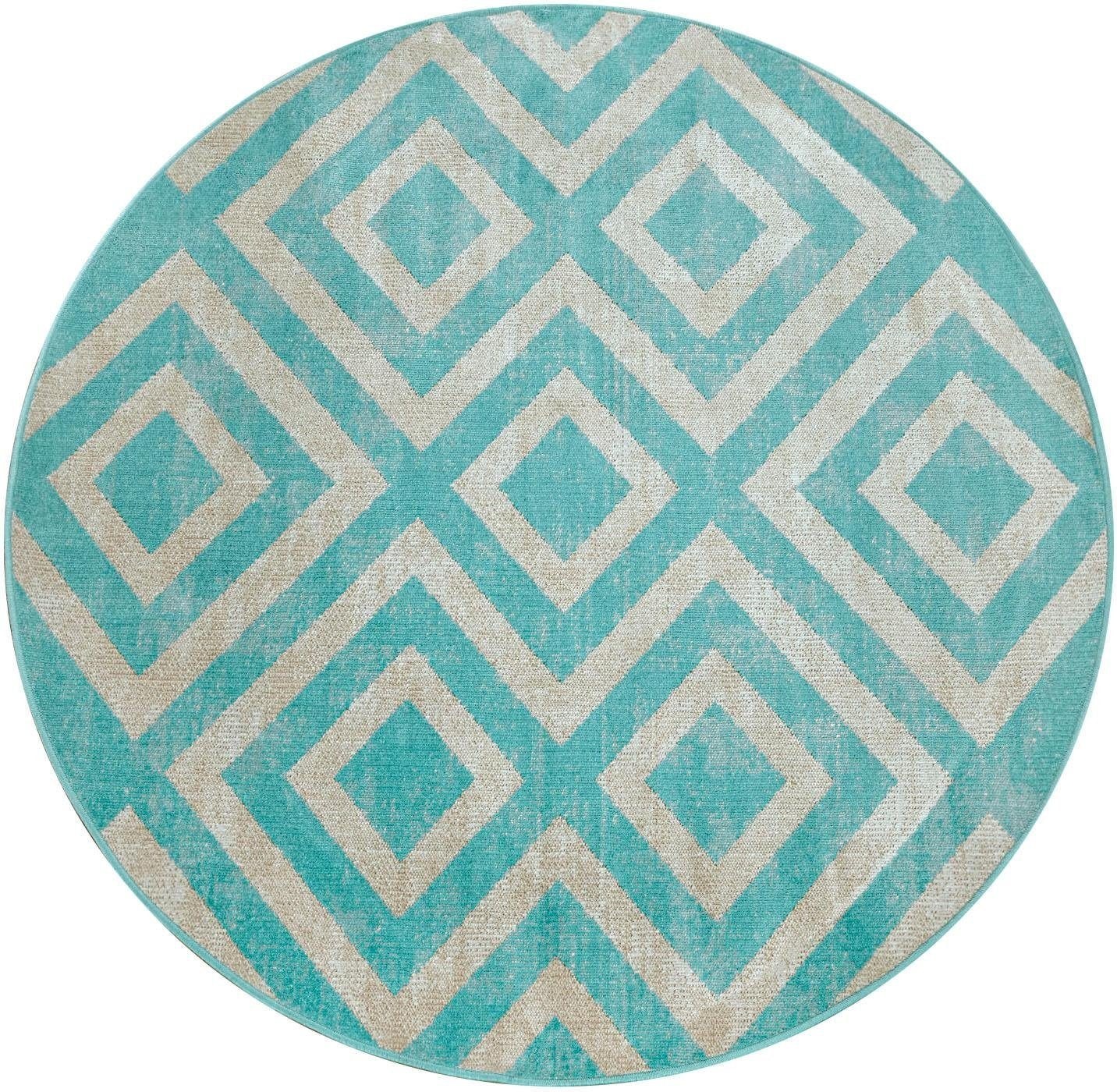 Paco Home Teppich »Poco 821« rund 6 mm Höhe Kurzflor, Rauten-Design, In- und Outdoor geeignet