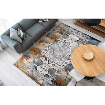Maschinell gewebter Teppich | Beim Auslegen des Teppichs kann durch das Aufrollen der Teppich etwas wellig erscheinen, dieses legt sich nach kurzer Zeit aus. Sie können dieses etwas beschleunigen wenn Sie den Artikel in gegenläufiger Richtung nochmals aufwickeln. |