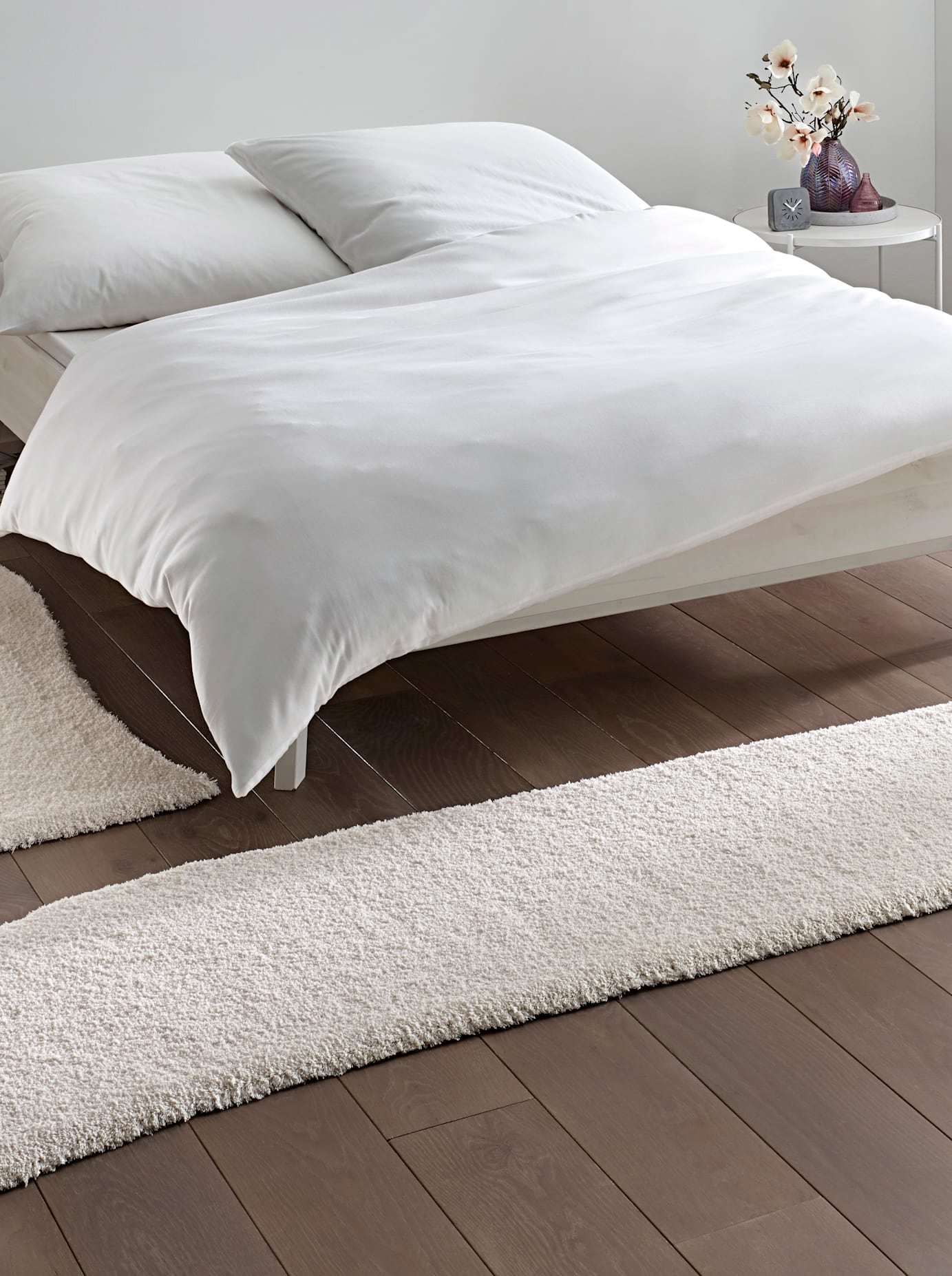 Teppich Flauschig weich. Ideal als Bettvorleger. Maschinell gewebt. Für Fussbodenheizung geeignet. 100% Polyester.