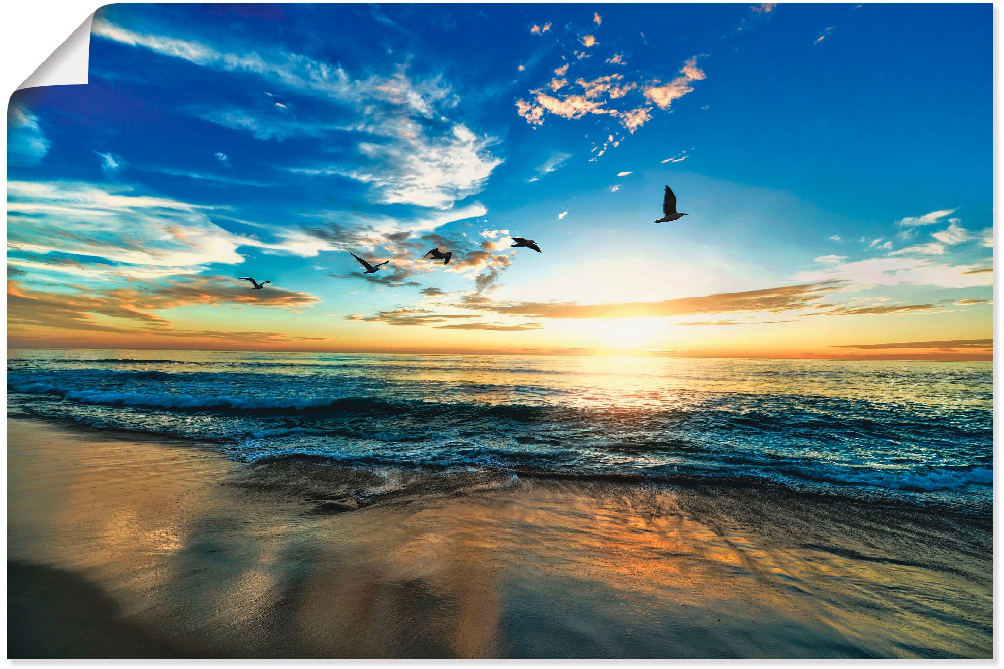 Artland Wandbild »Strand Möwen Meer Sonnenuntergang« Sonnenaufgang & -untergang 1 Stk. tlg. als Alubild, Outdoorbild, Leinwandbild, Poster, Wandaufkleber